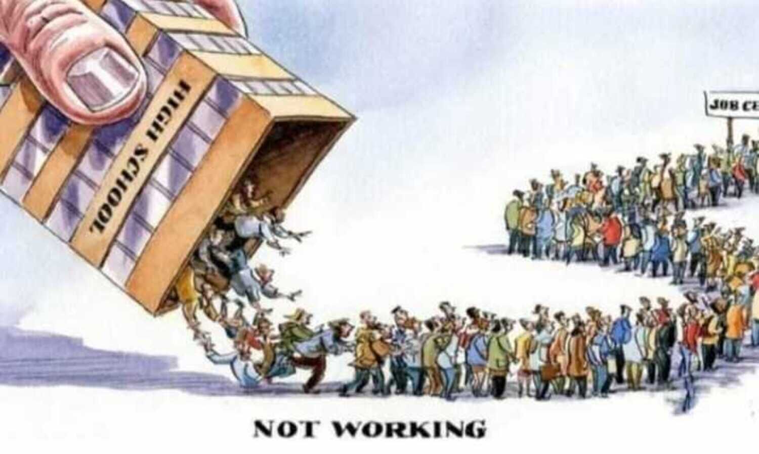 शिक्षित लोगों की आबादी में भारी बढ़ोतरी के बावजूद, महत्वाकांक्षी भारत में हाल के दिनों में कृषि क्षेत्र में रोजगार की संख्या बढ़ती हुई दिख रही है -- जो कि एक विडंबना ही है! जिसे अक्सर 'डेमोग्राफिक डिविडेंड' (जनसांख्यिकीय लाभांश) कहा जाता है -- यानी कुल आबादी में काम करने लायक उम्र के लोगों का ज़्यादा अनुपात होना -- वह 2030 तक खत्म हो जाएगा ; उसके बाद युवाओं का यह हिस्सा अपने चरम पर पहुँचने के बाद घटने लगेगा। अपने चरम पर, काम करने लायक उम्र की आबादी का हिस्सा, आश्रित आबादी के हिस्से से दोगुने से भी ज़्यादा होगा। दुर्भाग्य से, ऐसा लगता है कि कुछ ही सालों की इस छोटी-सी अवधि में इस लाभांश का लाभ उठा पाना अकल्पनीय है, क्योंकि 'स्टेट ऑफ़ वर्किंग इंडिया' पर हाल ही में आई एक रिपोर्ट बताती है कि स्नातक युवाओं में बेरोज़गारी की दर 40 प्रतिशत तक पहुँच गई है। एक और चौंकाने वाला तथ्य यह है कि युवा लड़के-लड़कियाँ अपने परिवारों की मदद करने के लिए पढ़ाई बीच में ही छोड़ रहे हैं। भारत में 15 से 29 साल की उम्र के 36.7 करोड़ लोग रहते हैं, जो दुनिया में सबसे ज़्यादा है, और यह काम करने लायक उम्र की कुल आबादी का एक-तिहाई हिस्सा है। इन 36.7 करोड़ लोगों में से कुछ ने खुद को श्रम बाज़ार से अलग कर लिया है, क्योंकि वे अभी भी पढ़ाई कर रहे हैं, जबकि 26.3 करोड़ युवा भारत की संभावित युवा कार्यबल का हिस्सा हैं। यह संख्या किसी भी यूरोपीय देश की आबादी से कहीं ज़्यादा है, और ब्राज़ील या पाकिस्तान जैसे देशों की कुल आबादी से भी ज़्यादा है। 20 से 29 साल के आयु वर्ग के युवा लोगों में से 6.3 करोड़ लोगों ने स्नातक या उससे ऊपर की पढ़ाई पूरी की है, और उनमें से 1.10 करोड़ स्नातक युवा बेरोज़गार हैं। यह संख्या स्वीडन या पुर्तगाल की कुल आबादी से भी ज़्यादा है। शिक्षित लोगों में बेरोज़गारी का यह विशाल सागर दो महत्वपूर्ण तथ्यों को उजागर करता है : पहला, स्नातक कार्यबल की मांग और आपूर्ति के बीच बढ़ता हुआ अंतर ; और दूसरा, इससे जुड़ा हुआ तथ्य यह है कि भारत में उत्पादन प्रक्रिया अभी भी कम पढ़े-लिखे और सस्ते श्रम पर ही निर्भर है। दिलचस्प बात यह है कि इस कार्यबल का गैर-कृषि क्षेत्रों की गतिविधियों से कृषि क्षेत्र की ओर वापस लौटना, और कृषि क्षेत्र में महिलाओं के रोज़गार का हिस्सा बढ़ना -- ये दोनों बातें 'विकसित भारत' की ओर बढ़ते कदम के दावों की विडंबना को ही दर्शाती हैं।