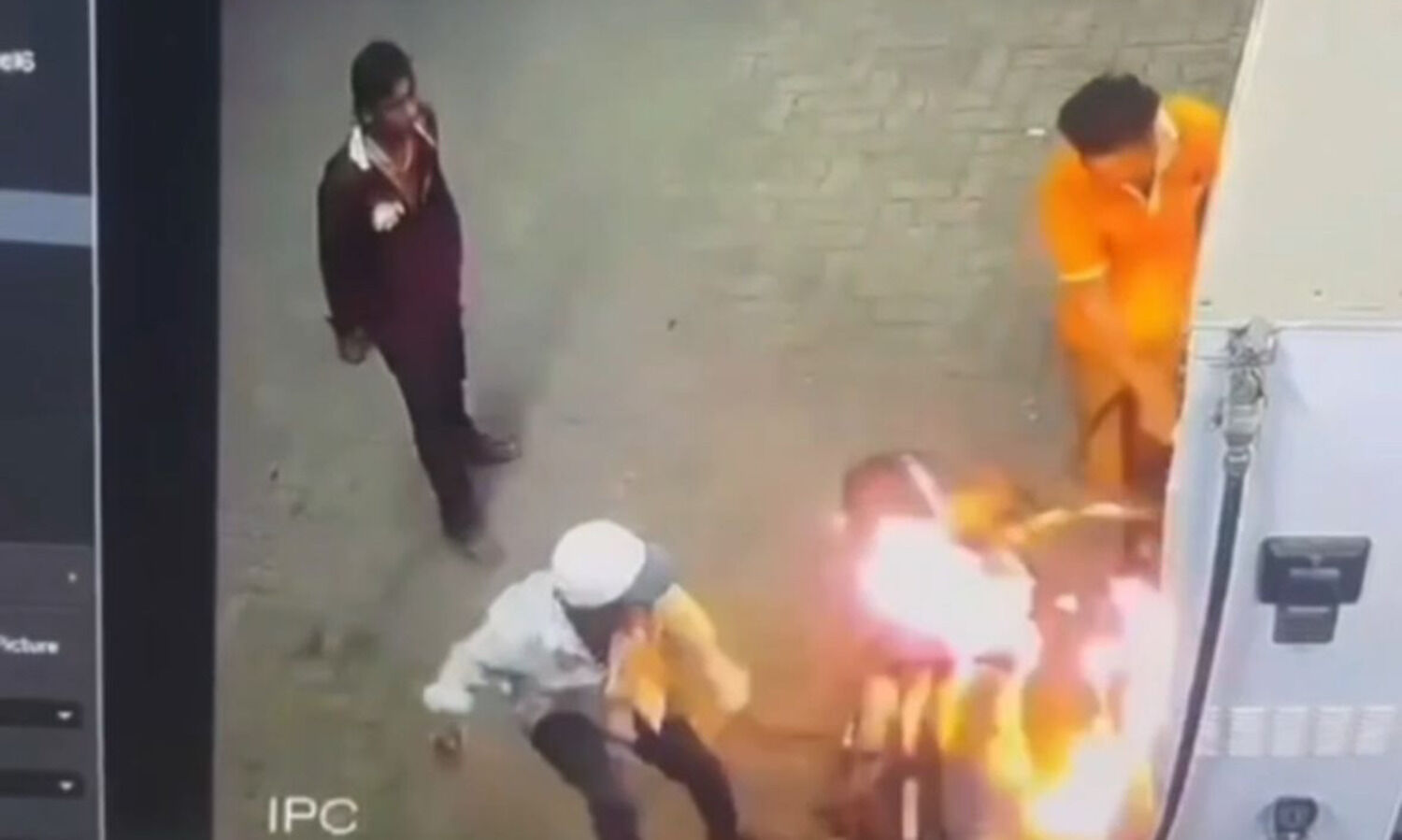 मना करने पर कथित तौर पर युवक ने गुस्से में जलता हुआ लाइटर बाइक की पेट्रोल टंकी की तरफ फेंक दिया, जिससे अचानक आग भड़क उठी। कुछ ही पलों में वहां मौजूद लोग घबराकर दूर हट गए और माहौल तनावपूर्ण हो गया।