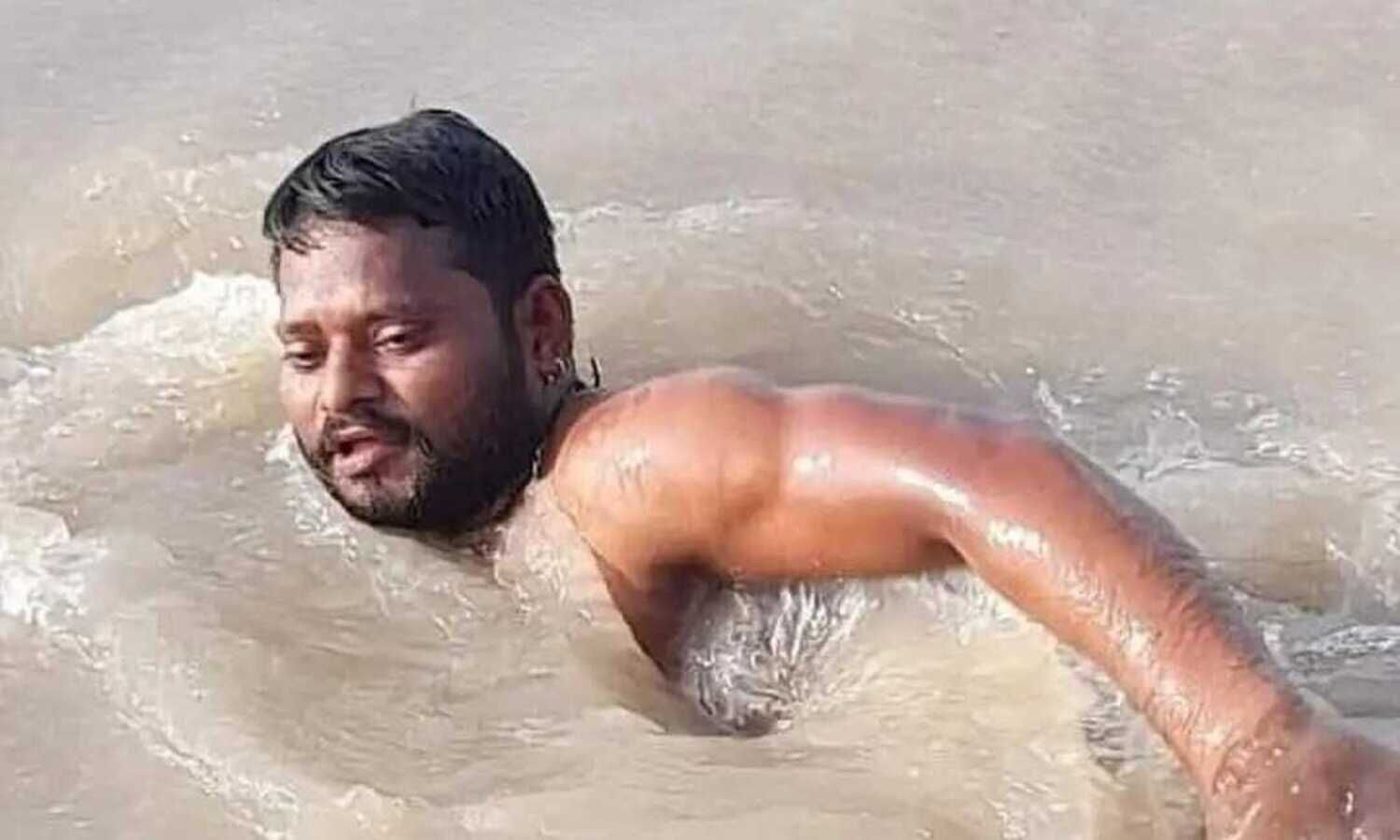 और तभी भीड़ को चीरता हुआ एक दुबला-पतला आदमी दौड़ता है, गमछा फेंकता है, और नदी में छलांग लगा देता है।
