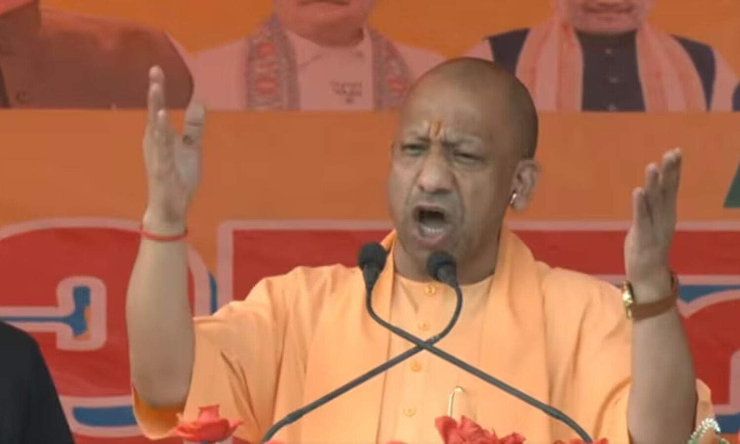 सीएम योगी ने कहा- "इंडी गठबंधन के तीन बंदरों की जोड़ी है, ये बिहार में खानदानी माफिया को गले लगाकर बिहार की सुरक्षा में सेंध लगाने का काम कर रहे हैं। घुसपैठियों को बिहार की धरती में घुसाकर बिहार की सुरक्षा में सेंध लगा रहे हैं। आरजेडी की सरकार के समय में यहां पर बिहार के अंदर 70 से अधिक नरसंहार की घटनाएं हुई थी। बिहार में जाति को जाति से लड़ाते थे। पर्व और त्यौहार नहीं होने देते थे। बेटी, व्यापारी असुरक्षित, कट्टा बंदूक लेकर के बिहार की पूरी व्यवस्था को धूमिल करने का प्रयास किया था। ये आपको तो जाति के नाम पर बांटते हैं और फिर राष्ट्रीय सुरक्षा पर सेंध लगाने का काम करते हैं।"