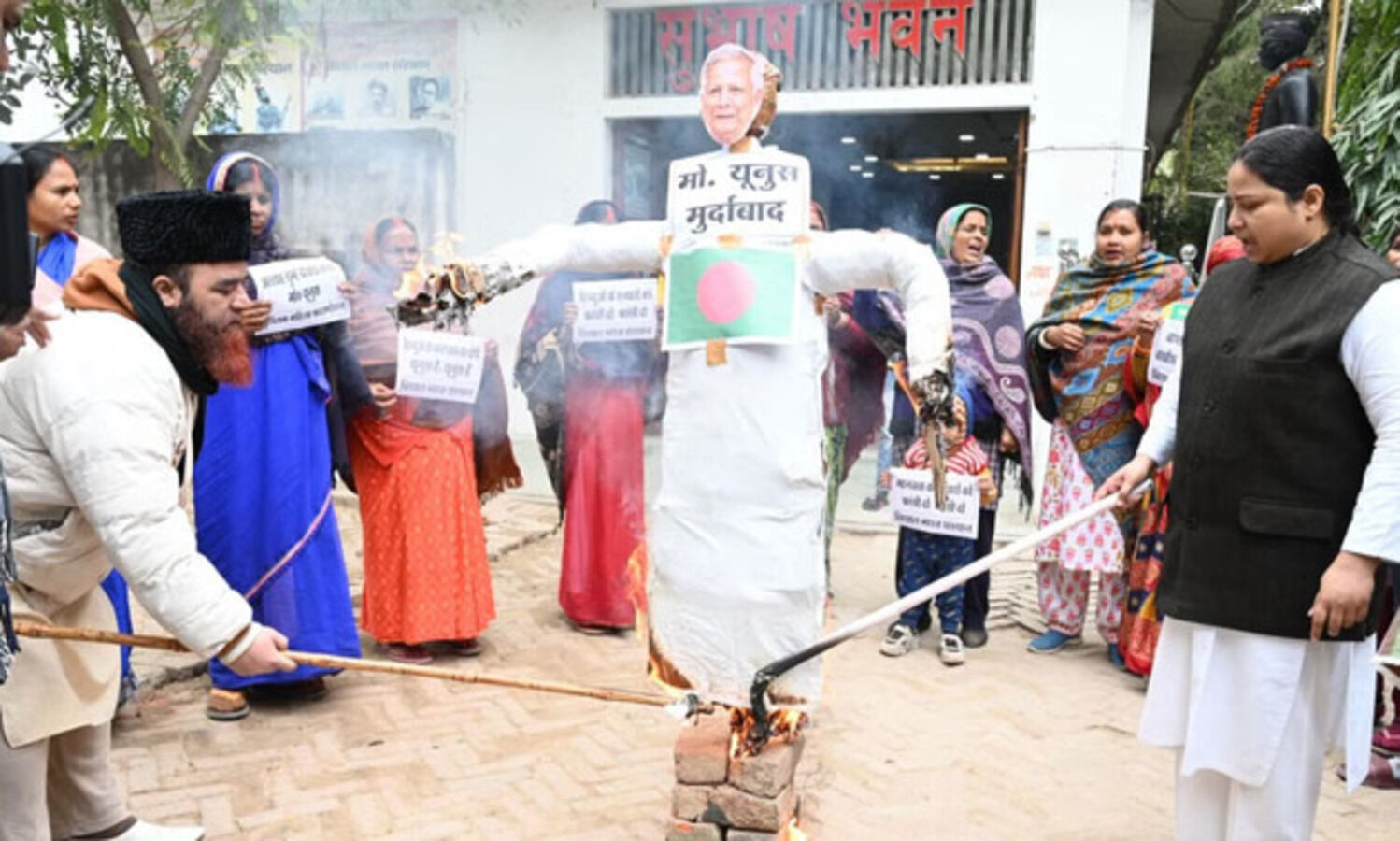 मोहम्मद यूनुस के पुतले को आग लगाते हुए डॉ. नजमा परवीन ने कहा कि मजहबी उन्मादियों, कातिलों के खिलाफ अब मोर्चा खोल दिया गया है। अब समय आ गया है जब मुसलमान इन कट्टरपंथियों के गिरहबान में हाथ डालकर इनको हिंदुस्तान की पाक जमीन से खदेड़ दें।