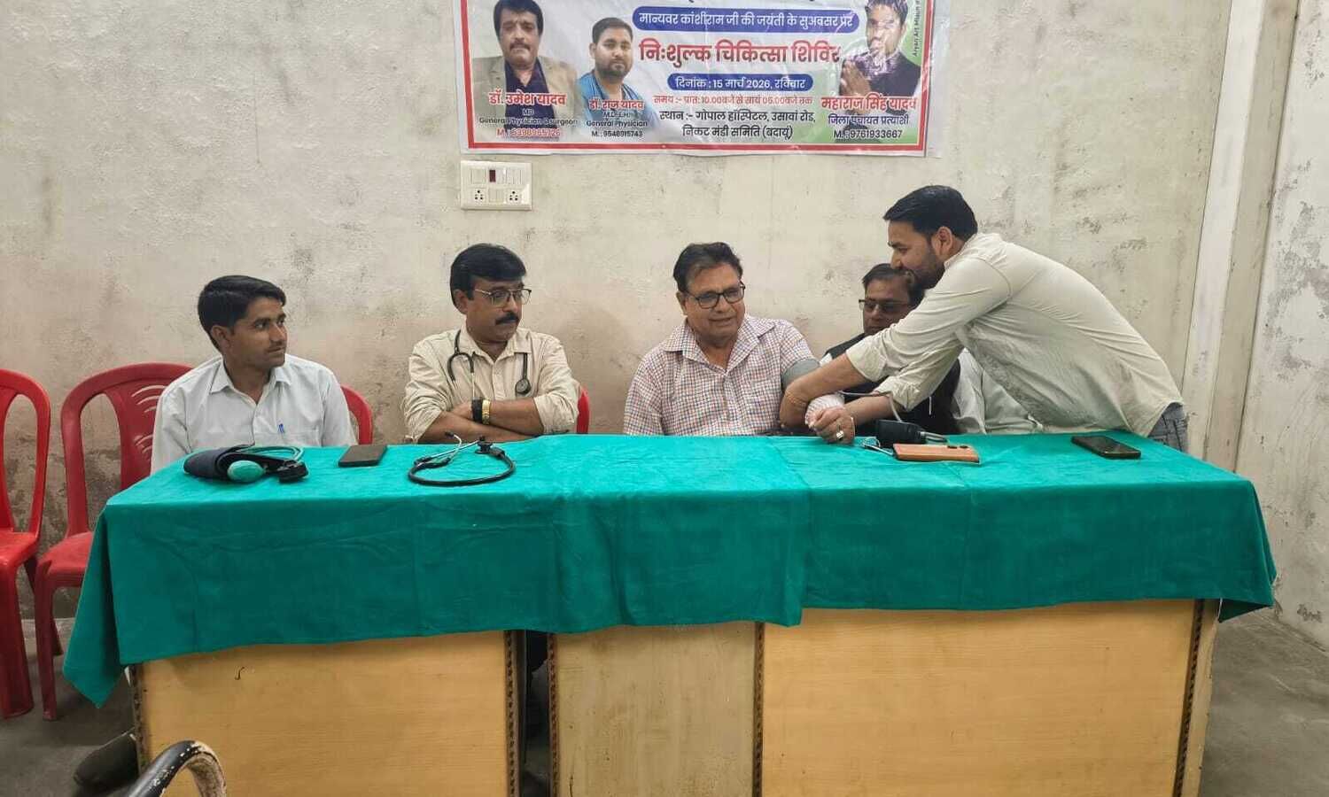 बदायूँ : आज दिनाँक 15 मार्च 2026 को बहुजन नायक कांशीराम की जयंती पर उत्तर प्रदेश कांग्रेस चिकित्सा प्रकोष्ठ ने राज्य के सभी 75 जिलों में 'स्वास्थ्य सृजन अभियान' के तहत आज शहर कांग्रेस चिक्तिसा प्रकोष्ठ अध्यक्ष राज बेटा यादव की अध्यक्षता में नि:शुल्क चिकित्सा शिविर आयोजित किया गया। जिसमे मुख्यातिथि के रूप में पूर्व जिलाध्यक्ष ओमकार सिंह रहे विशिष्ट अतिथि के रूप में शहर कांग्रेस अध्यक्ष मुन्ना लाल सागर मौजूद रहे इस अवसर पर ओमकार सिंह ने कहा यह पहल वंचितों और कमजोर वर्गों को स्वास्थ्य सेवाएं प्रदान करने और कांशीराम जी के विचारों को सेवा से जोड़ने के उद्देश्य से की गई, जिसे 'सामाजिक परिवर्तन दिवस' के रूप में मनाया गया। इस अवसर पर शहर कांग्रेस अध्यक्ष मुन्ना लाल सागर ने कहा यूपी कांग्रेस के चिकित्सा योद्धाओं ने ग्रामीण और शहरी क्षेत्रों में जरूरतमंदों के लिए मुफ्त जांच और चिकित्सा शिविर लगाये गए है इस अवसर पर राज बेटा यादव ने कहा इस आयोजन का उद्देश्य स्वास्थ्य सेवाओं को आम जनमानस तक पहुँचाना और बहुजन नायक को उनकी जयंती पर सेवा के माध्यम से याद करना था। इस अवसर पर एससीएसटी विभाग अध्यक्ष मुनेंद्र कन्नौजिया ने एवं संभावित जिला पंचायत सदस्य प्रत्याशी महाराज सिंह ने सयुक्त रूप से कहा इन शिविरों के माध्यम से कांग्रेस ने अपनी उपस्थिति दर्ज कराई और कांशीराम जी के सामाजिक परिवर्तन के संदेश को आगे बढ़ाने का प्रयास किया। इस अवसर पर कांग्रेसजनों ने इस भव्य चिकित्सा शिविर के सहयोग के लिए गोपाल हॉस्पिटल प्रबंधक डॉक्टर उमेश यादव का आभार व्यक्त किया इस अवसर पर महरुम खांन, शिमबूल ख़ान, निमेन्दर यादव, प्रदीप कुमार, सुमित, विट्टू ठाकुर, करतार सिंह आदि कांग्रेसजन मौजूद रहे