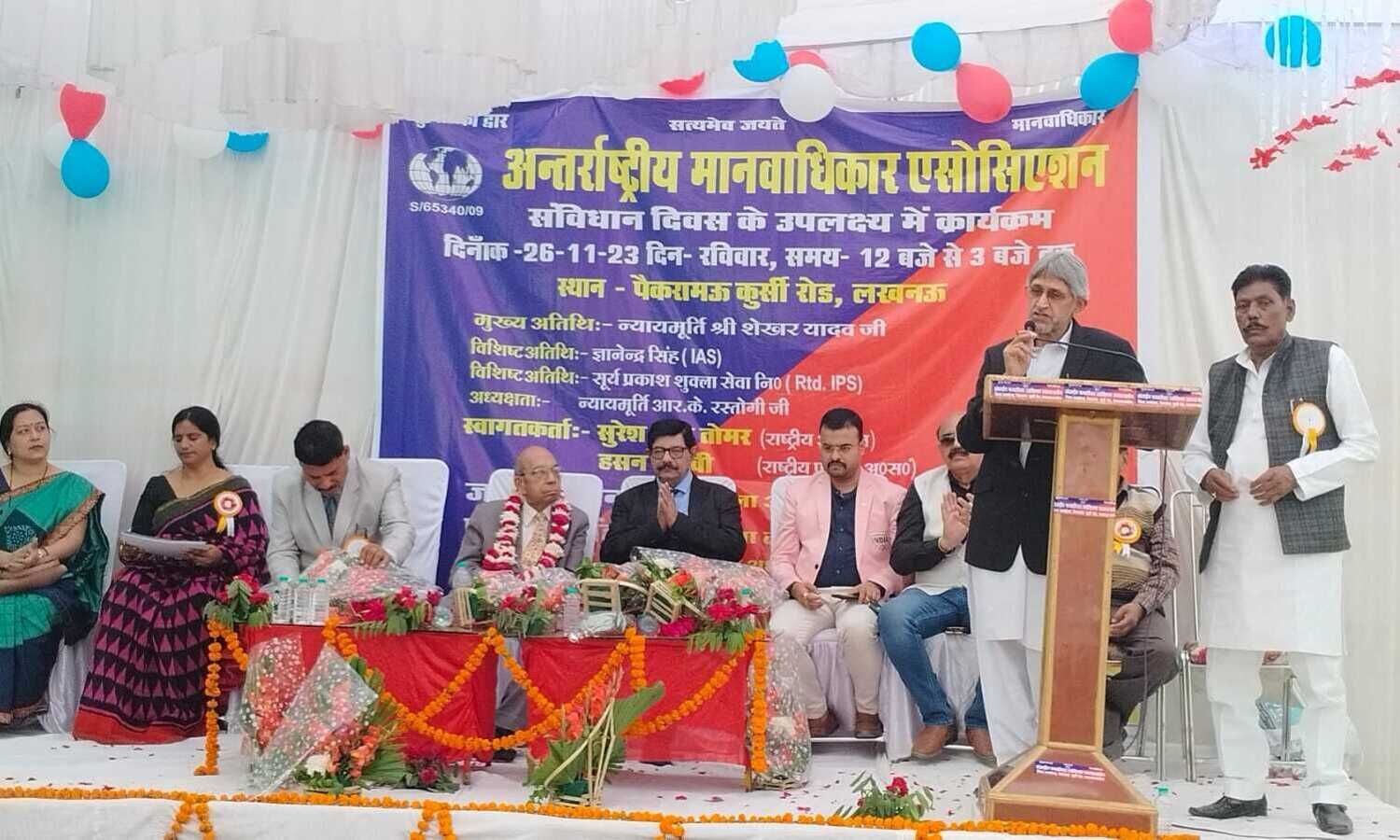 वहीं अंतरराष्ट्रीय मानवाधिकार एसोसियेशन के राष्ट्रीय अध्यक्ष एसएस तोमर ने कहा की विश्व के सभी संविधानों से अच्छे सूत्र लेकर हमारा संविधान बना है। प्रथमत: संविधान में 10 वर्ष के लिए आरक्षण लागू किया गया था, लेकिन अभी तक आरक्षण की आड़ में राजनीतिक रोटियां सेंकी जा रही हैं। कार्यक्रम की अध्यक्षता न्यायाधीश आरके रस्तोगी ने और मंच संचालन हसन नकवी ने किया। इस अवसर पर जमालुद्दीन बेग कल्लू नेता, प्रभाकर सिंह, प्रियंका चौधरी, राजकुमार गौतम, मोहम्मद मोइन, शांति यादव, मोहम्मद नदीर , डॉक्टर मनु सिंह चौहान, सहित तमाम गणमान्य लोग उपस्थित थे।