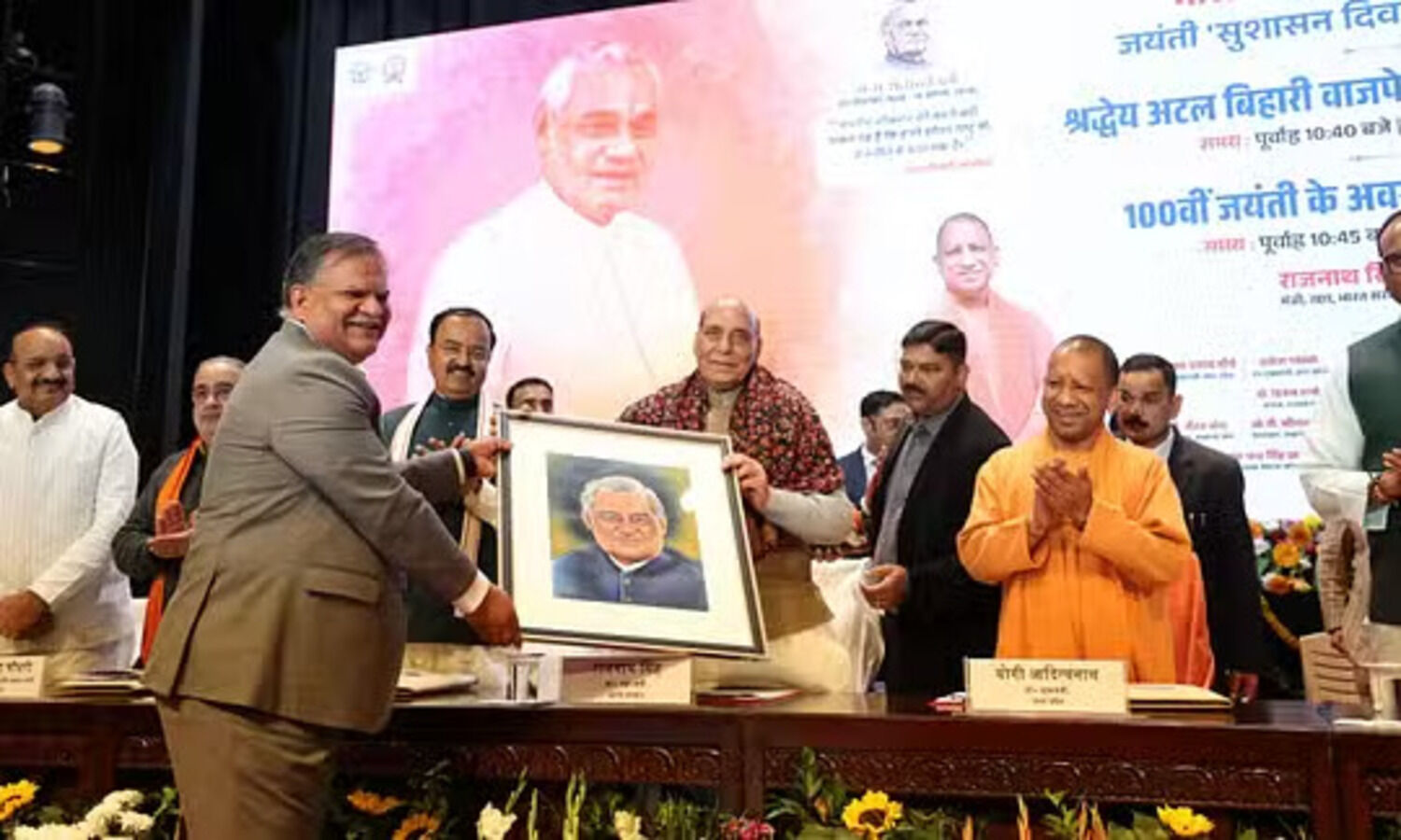 रक्षा मंत्री राजनाथ सिंह और मुख्यमंत्री योगी आदित्यनाथ ने 'भारत रत्न' अटल बिहारी वाजपेयी के जन्म शताब्दी समारोह में शिरकत की। रक्षा मंत्री व मुख्यमंत्री समेत जनप्रतिनिधियों ने लोकभवन में पूर्व प्रधानमंत्री की प्रतिमा पर पुष्पांजलि भी की। सीएम ने महामना मदन मोहन मालवीय की जयंती व क्रिसमस की बधाई दी। छात्रा स्नेहा तिवारी ने कविता सुनाई। रक्षा मंत्री व मुख्यमंत्री ने विभिन्न प्रतियोगिताओं के विजेताओं को भी सम्मानित किया।