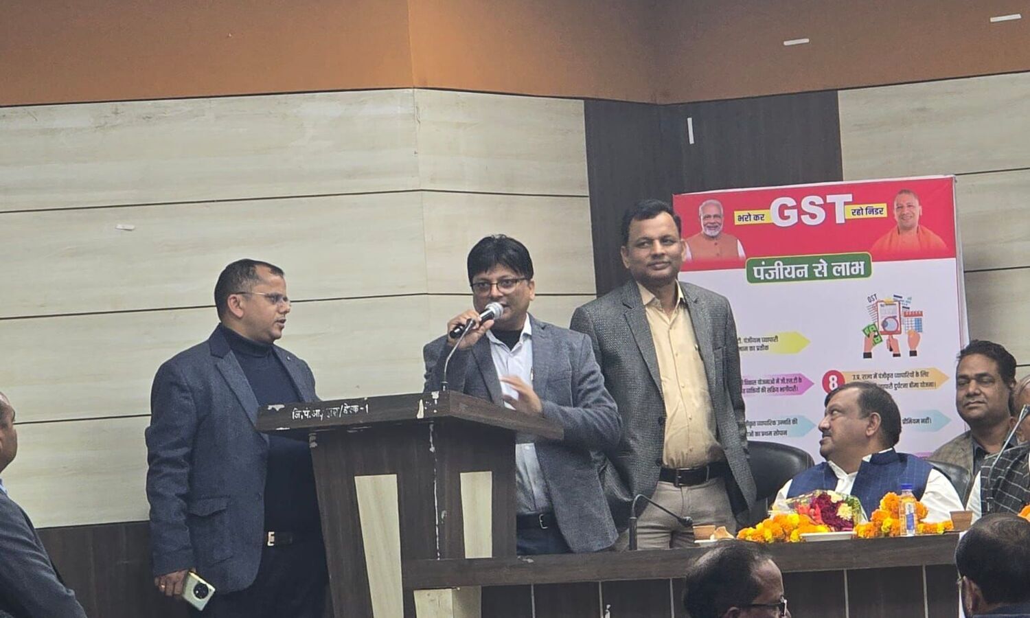 आज़मगढ़ के नेहरू हाल में जीएसटी पंजीयन जागरूकता , रिटर्न फ़ाइलिंग में आ रही दिक़्क़तों, सीएम व्यापारी दुर्घटना योजना एवं व्यापार में आ रही दिक़्क़तों के निवारण के लिये जीएसटी मेगा सेमिनार का आयोजन किया गया !