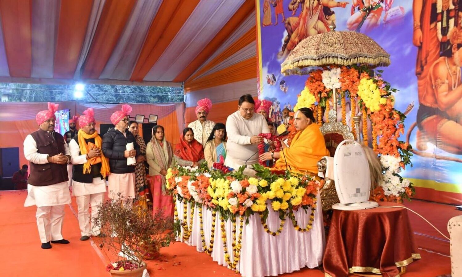 कथा संयोजक संजीव पाण्डेय ने बताया आज राजधानी लखनऊ सहित पड़ोसी जनपदों के कथा जिज्ञासु भारी संख्या में उपस्थित रहे। आज के यजमान का दायित्व उत्तर प्रदेश सरकार के पूर्व मंत्री अरविन्द सिंह गोप ने उठाया। श्री सतीश अवस्थी,जितेन्द्र सिंह जीतू एवं अनुराग यादव अन्नू सुनील कुमार यादव * जज साहब* ने व्यास पूजन कर रामायण की आरती की तथा डॉ एल पी मिश्र, पूर्व मंत्री एवं सांसद कुसुम राय, मनोज द्विवेदी महामंत्री अवध बार, अमरेश पाल सिंह महामंत्री सेंट्रल बार ने माल्यार्पण कर व्यास जी महाराज का आशीर्वाद प्राप्त किया।
