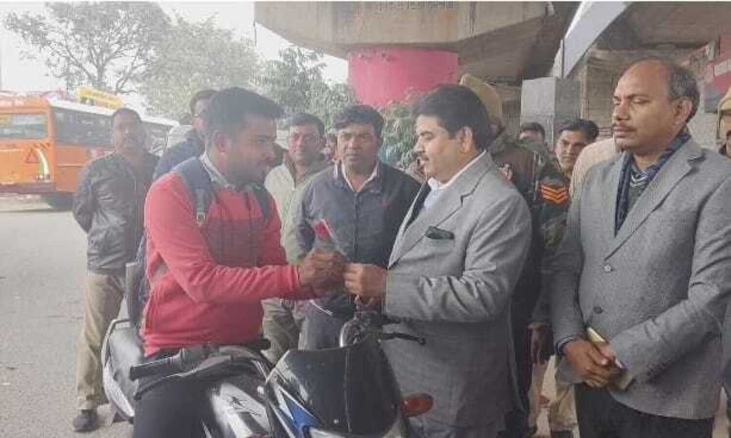 राष्ट्रीय सड़क सुरक्षा माह के तहत आज 08 जनवरी 2025 को बड़ेवन चौराहे पर बिना हेलमेट व सीटबेल्ट वाहन का संचालन करने वाले वाहन चालकों को परिवहन विभाग के फरीदउद्दीन संभागीय परिवहन अधिकारी एवं एआरटीओ पंकज सिंह ने पुष्प देकर यह अनुरोध किया कि घर पर बच्चे इंतजार कर रहे हैं इसलिए बिना हेलमेट व सीट बेल्ट के वाहन का संचालन न करें तथा हेलमेट व सीटबेल्ट का प्रयोग करते हुए वाहन का संचालन करने वाले चालकों को पुष्प की माला पहनाकर सम्मानित किया । साथ ही प्रत्येक वाहन चालक अपने आस-पास रहने वाले कम से कम 05 व्यक्तियों को सड़क सुरक्षा के प्रति जागरूक करने के लिए अनुरोध किया । परिवहन विभाग द्वारा शहर के विभिन्न चौराहों पर सड़क सुरक्षा के प्रति आमजनमानस को जागरूक करते हुए सड़क सुरक्षा सम्बन्धी पैम्फ्लेट/लीफलेट वितरण किया गया।