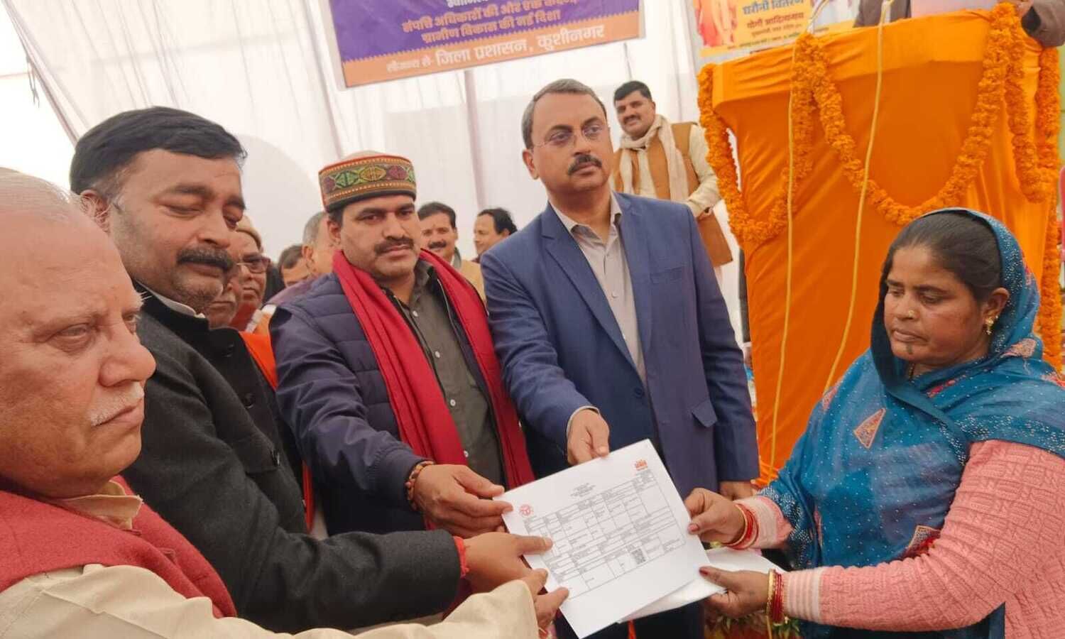 मा0 जनप्रतिनिधि गणों के साथ डीएम द्वारा घरौनी प्रमाण पत्र का किया गया वितरण