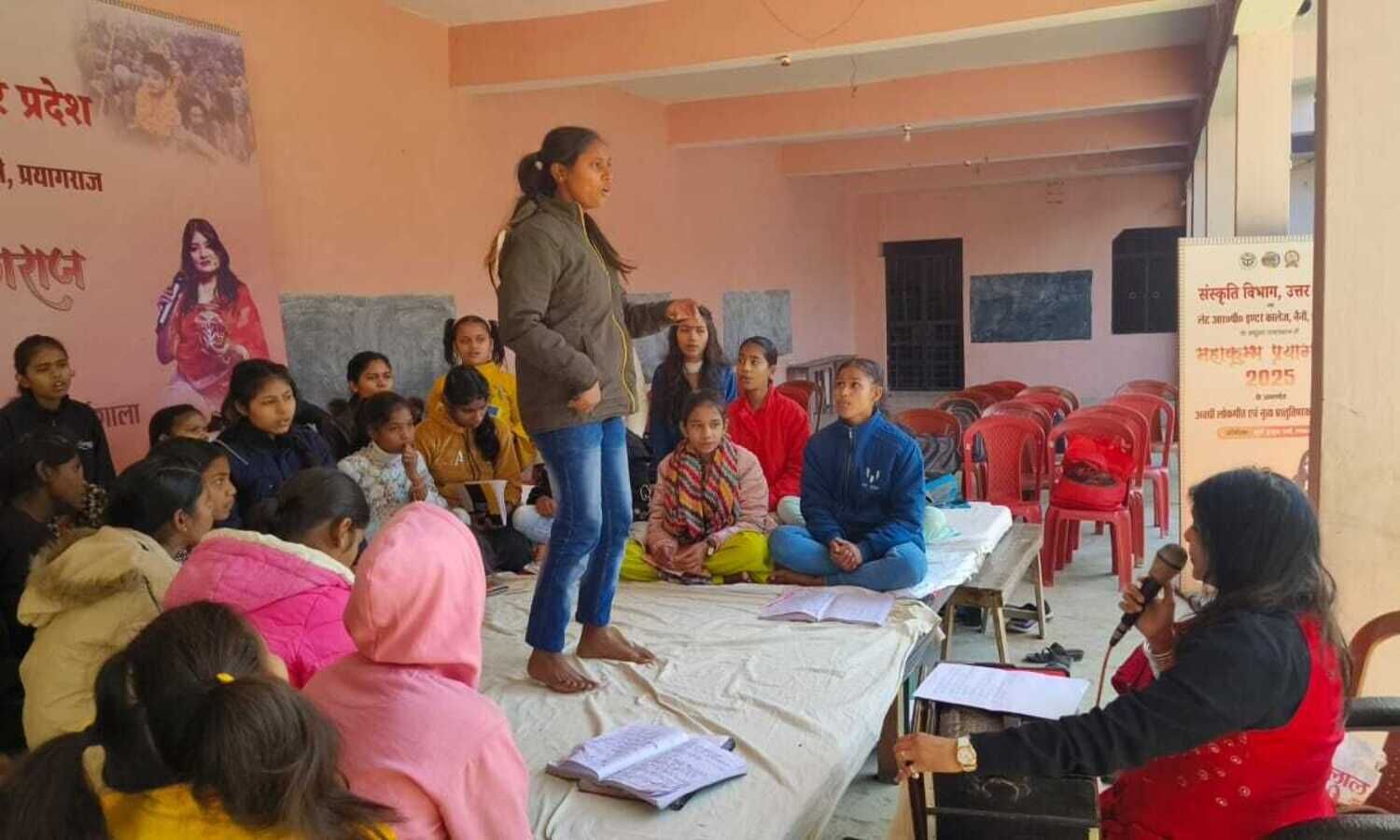 संस्कृति विभाग उत्तर प्रदेश सरकार के सहयोग से ग्राम विभाग उत्तर प्रदेश द्वारा करछना व चाका तहसील के सरकारी और गैर-सरकारी विद्यालयों में पंद्रह दिवसीय कार्यशालाओं का आयोजन किया गया है। आठ जनवरी से 22 जनवरी तक चलने वाली विलुप्त होती कलाओं का प्रशिक्षण प्रदान करने के लखनऊ के अनुभवी कलाकारों का चयन किया गया है। अवधी लोक गीत, नृत्य कार्यशाला में पचपन बच्चों को प्रशिक्षण कल्चर दीदी के नाम से प्रसिद्ध लोक गायिका कुसुम वर्मा प्रदान कर रही हैं। लोक गीतों की परम्परागत विधा में बन्ना-बन्नी, कुम्भ मेला गीत, कजरी, फाग, होली आदि देवी स्तुति का प्रशिक्षण लेट आर पी के बच्चों को प्रदान कर रही हैं। वहीं रंगोली का प्रशिक्षण खान पट्टी महेबा के बच्चों प्रदान करने के लिए लखनऊ की बेहतरीन लोककला में सिद्धहस्त कलाकर ज्योति किरन रतन प्रशिक्षणरत हैं। ज्योति रतन ने बताया कि महाकुंभ महिमा को ध्यान में रखते हुए प्रत्येक पूजा अवसर पर बनाये जाने वाली परंपरागत चौक और रंगोली जो देश के विभिन्न राज्यों का हिस्सा है उसको सिखाया है, जिसकी प्रस्तुति बच्चों द्वारा कला कुंभ पंडाल में होगी। रंगोली कार्यशाला में प्रत्येक व्रत, त्योहार से संबंधित चौक के साथ घर को सजाने में कैसे चौक बनायें। रंगोली बनाने के लिए अधिकतर बेकार सामान जैसे बालू , मिट्टी, गोबर, चोकर, दाल भूसी के साथ पानी के पेंट का प्रयोग किया जा रहा है। यही नहीं, प्रत्येक परम्परागत रंगोली के साथ जुड़ी कहानी और महत्त्व के बारे में भी बताया जा रहा है। जादू सिखाने में लखनऊ के विख्यात प्रशिक्षक जादूगर आफताब और सुरेश की जोड़ी नित नये जादू या कहें हाथ की सफाई से, बच्चों को हैरान कर रहे है। बच्चे भी मजे से प्रसन्न होकर सीख रहे हैं। लखनऊ के कलाकारों संग बच्चों की प्रस्तुतियां 21और 22 जनवरी को कला कुम्भ मेला पंडाल में आयोजित होंगी।
