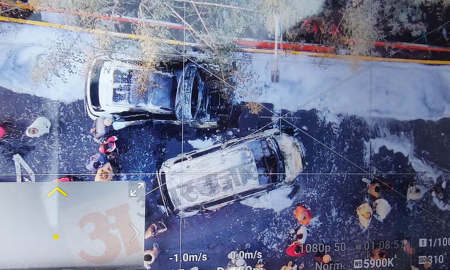 सड़क किनारे खड़ी दो गाड़ियों में अचानक लगी आग