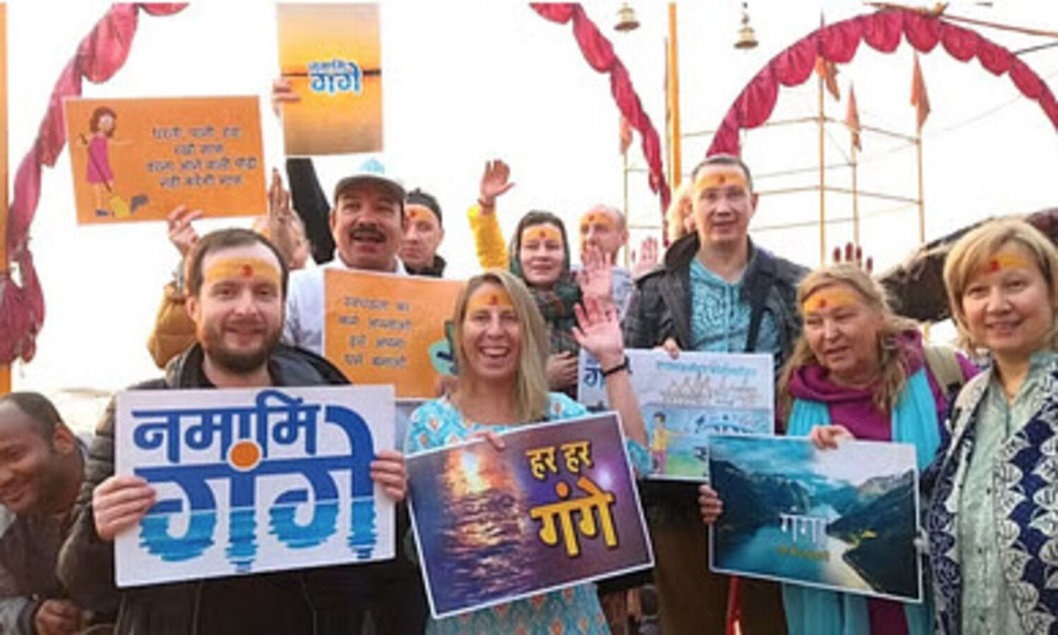 नमामि गंगे काशी क्षेत्र के संयोजक व नगर निगम के स्वच्छता ब्रांड एंबेसडर राजेश शुक्ला के संयोजन में विदेशी पर्यटकों ने 'हम नहीं रुकेंगे- हम स्वच्छ करेंगे, हर हर महादेव, हर हर गंगे, नमामि गंगे के उद्घोष से वातावरण को स्वच्छ और भक्तिमय बना दिया।