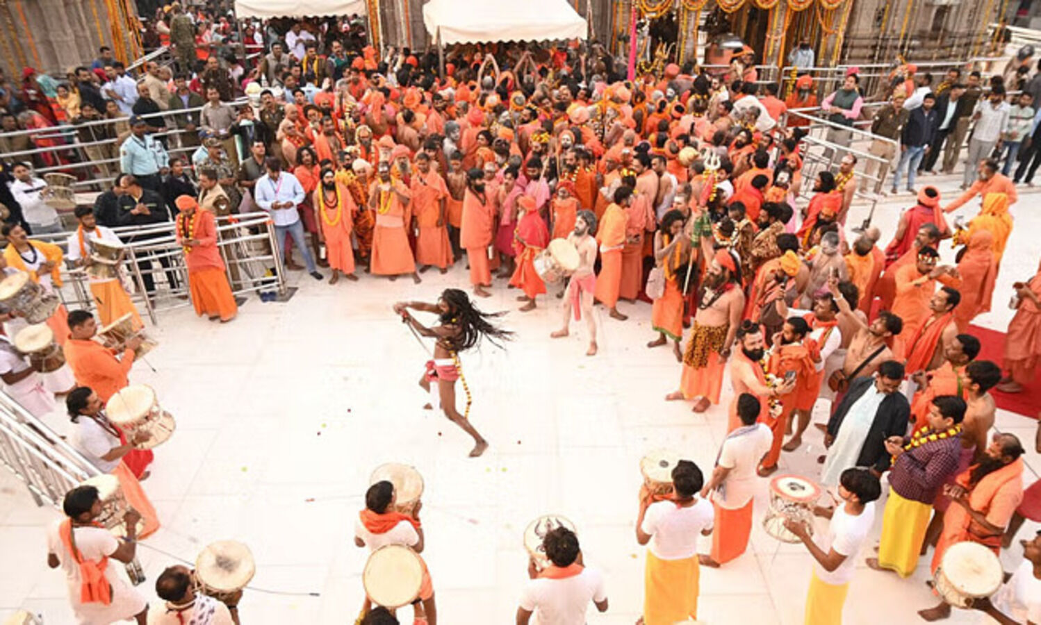 हर-हर महादेव का जयकारा लगाते हुए नागा संन्यासियों की टोली विश्वनाथ धाम में पहुंची। बता दें कि इससे पहले नागा संन्यासियों को ढुंढिराज गणेश मार्ग से मंदिर परिसर में प्रवेश मिलता था। नागा संन्यासियों ने बाबा दरबार में हाजिरी लगाई। इस दौरान महाकुंभ की पूर्णाहुति की गई। काशी विश्वनाथ मंदिर में पूजा-अर्चना करने के बाद निरंजनी अखाड़े के आचार्य महामंडलेश्वर स्वामी कैलाशानंद गिरि महाराज ने कहा कि महाशिवरात्रि के अवसर पर सभी पांच अखाड़ों ने महादेव की पूजा-अर्चना की और महाकुंभ की 'पूर्णाहुति' के लिए 'अभिषेक' किया।