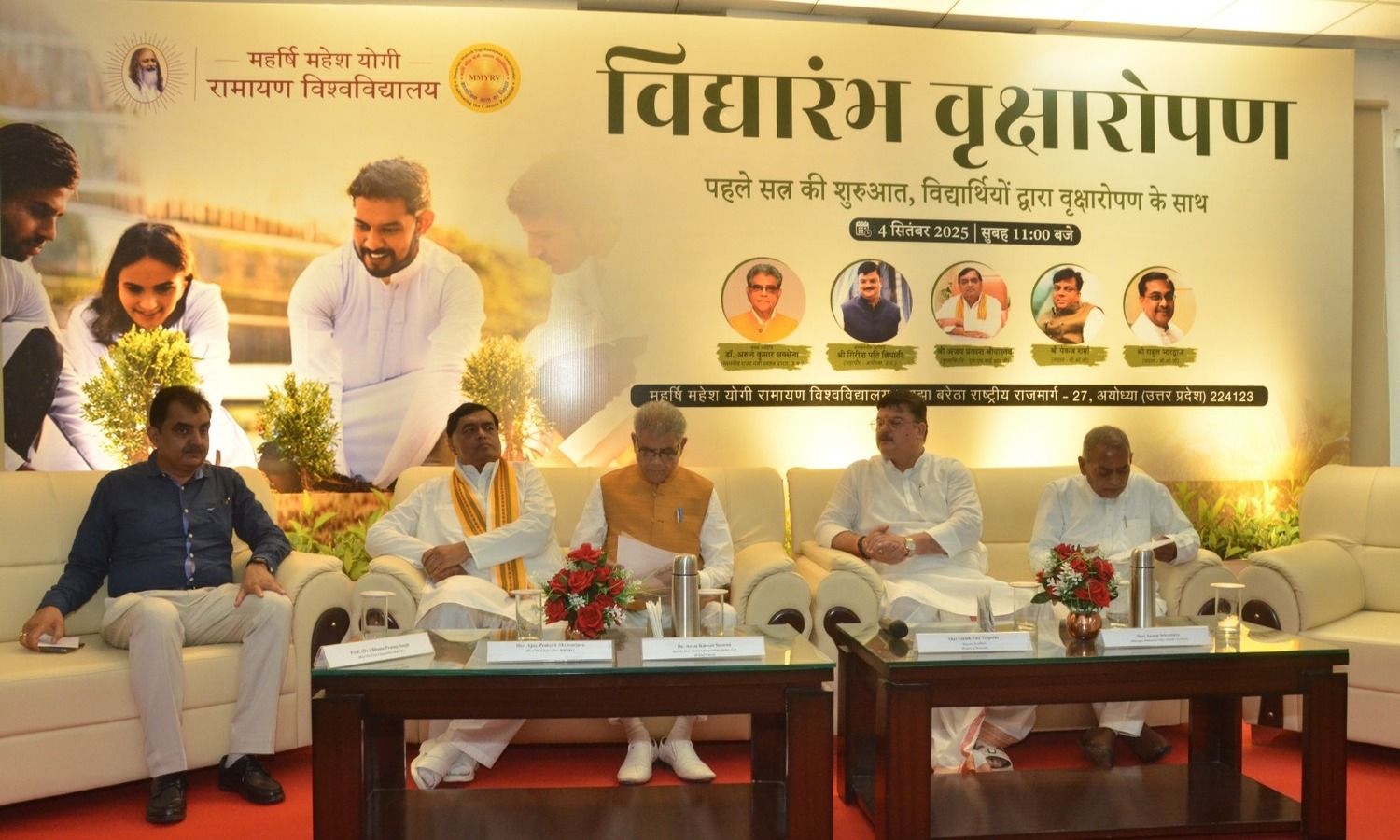 अयोध्या। (वासुदेव यादव)राम की नगरी अयोध्या एक ऐतिहासिक पल की साक्षी बनी, जब महर्षि महेश योगी रामायण विश्वविद्यालय ने अपने पहले शैक्षणिक सत्र की शुरुआत एक अद्वितीय पहल के साथ की। पारंपरिक उद्घाटन से अलग हटकर विश्वविद्यालय ने नए सत्र का आरंभ विद्यार्थियों के हाथों पौधारोपण से किया।