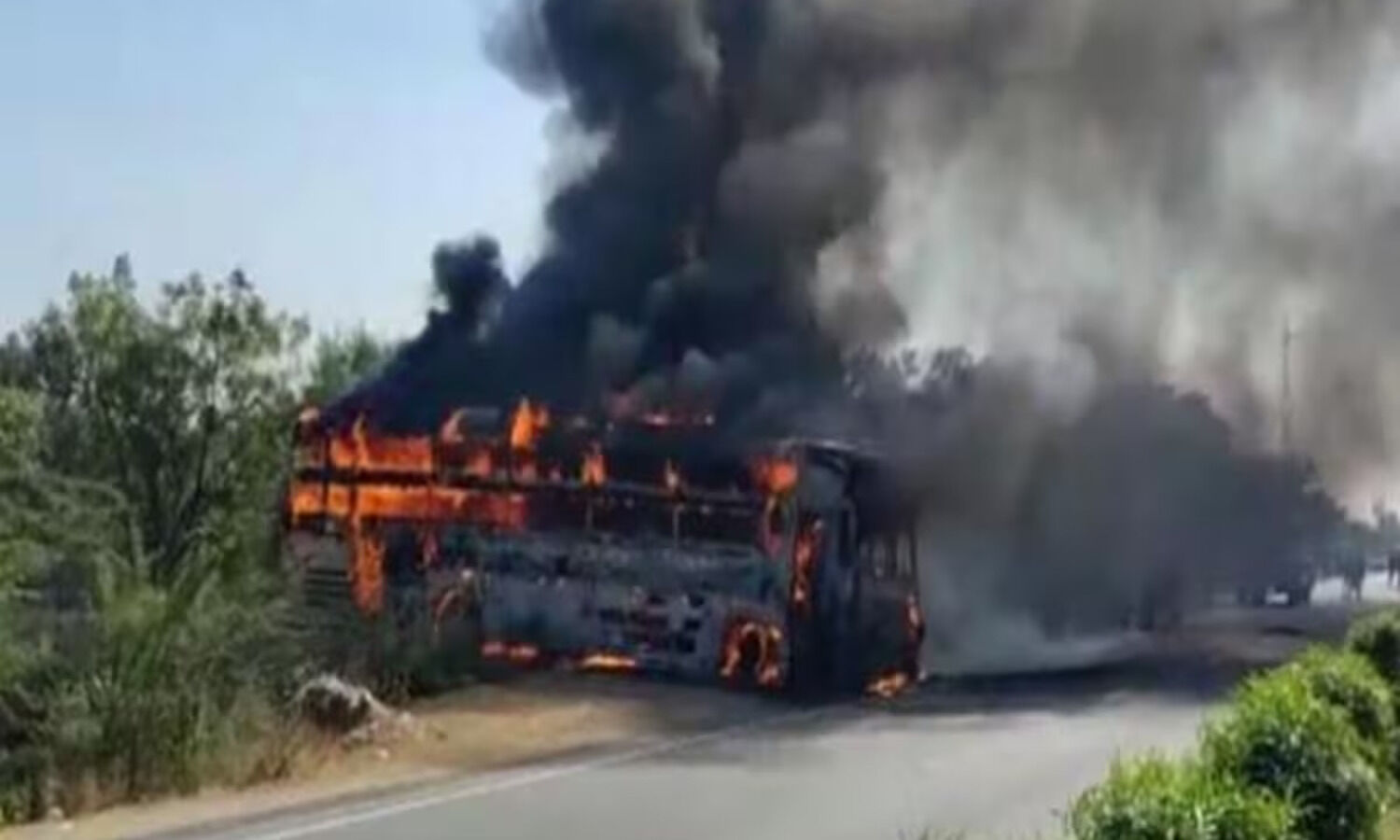 लेकिन तब तक बस पूरी तरह खाक हो चुकी थी। दो मजदूरों के शव बस के अंदर से बरामद किए गए। कम से कम छह से आठ लोग झुलसकर घायल हुए हैं, जिन्हें नजदीकी अस्पताल में भर्ती कराया गया है।