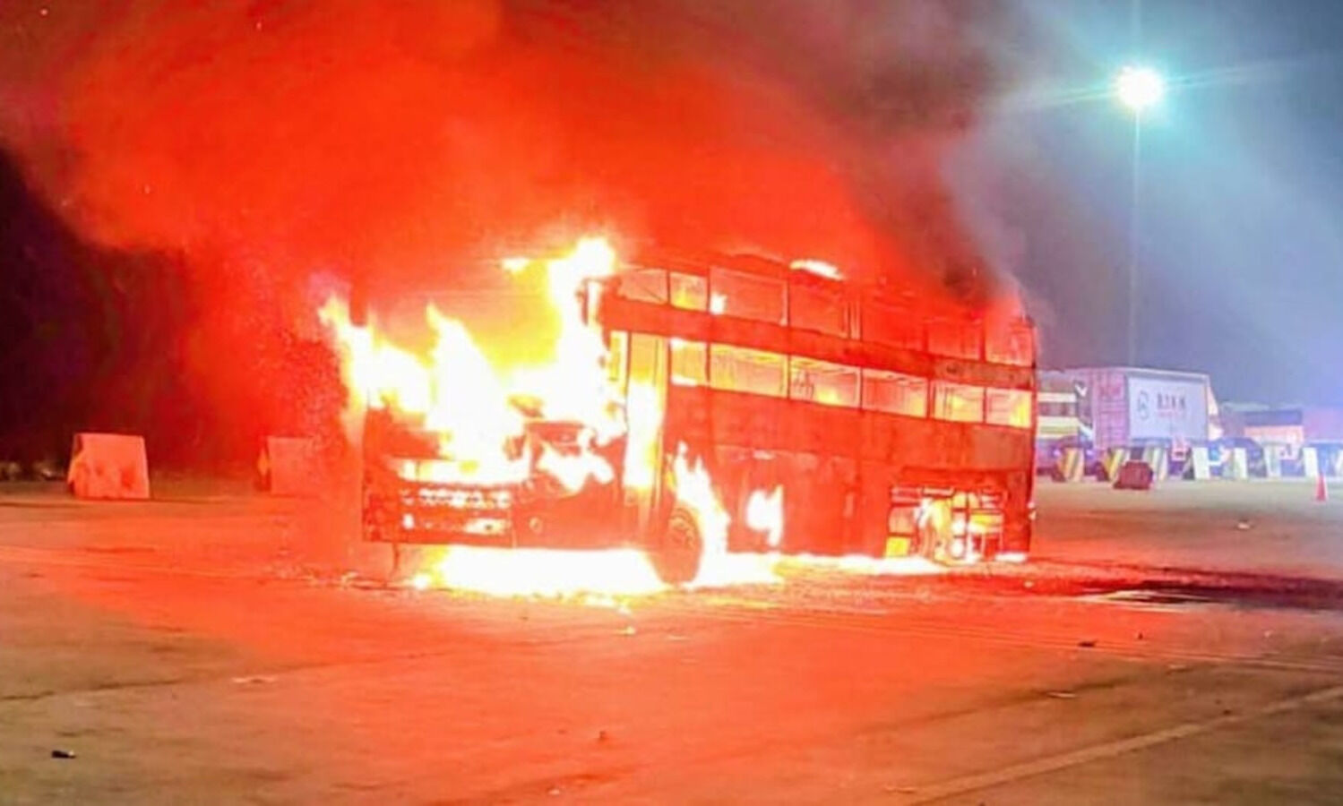 कन्नौज में देर रात लखनऊ-आगरा एक्सप्रेसवे पर दर्दनाक सड़क हादसा होने से टल गया. डबल डेकर बस का टायर अचानक फटने से उसमें आग लग गई. बस में उस वक्त 50 से ज्यादा यात्री सवार थे. हालांकि, ड्राइवर और परिचालक की सूझबूझ से सभी यात्रियों को समय रहते सुरक्षित बाहर निकाल लिया गया, जिससे बड़ी जनहानि होने से टल गई.