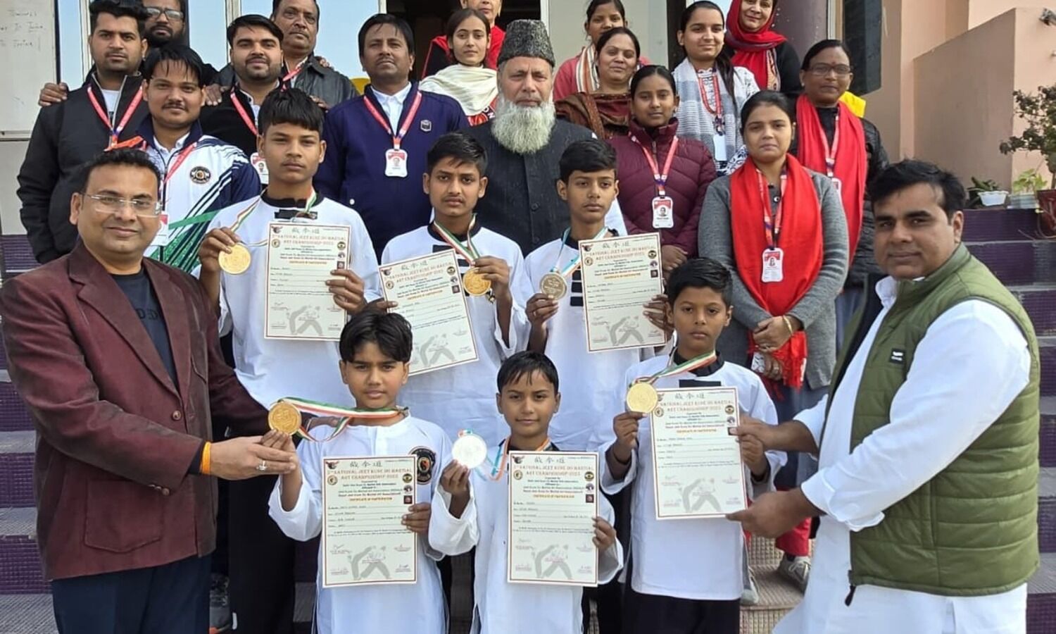 बिलारी। दिल्ली के ईस्ट विनोद नगर स्पोर्ट्स कॉम्प्लेक्स में 29 एवं 30 नवंबर 2025 को आयोजित दो दिवसीय 5th नेशनल जीत कुने-डो मार्शल आर्ट्स टूर्नामेंट में देशभर के राज्यों—उत्तर प्रदेश, हरियाणा, झारखंड, उत्तराखंड, असम, मध्य प्रदेश, दिल्ली और पंजाब—से आए सैकड़ों प्रतिभागियों ने अपनी दमदार उपस्थिति दर्ज कराई। इसी राष्ट्रीय मंच पर मुरादाबाद जिले की बिलारी तहसील स्थित रॉयल पब्लिक स्कूल के 6 खिलाड़ियों ने उत्कृष्ट प्रदर्शन कर सबका ध्यान अपनी ओर खींच लिया।