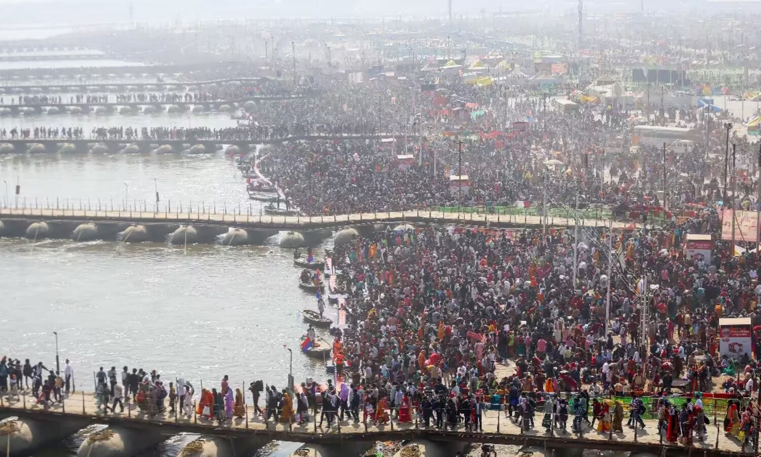 प्रयागराज के महाकुंभ मेले में मंगलवार और बुधवार को श्रद्धालुओं की भारी भीड़ उमड़ी. करीब 12.5 करोड़ से अधिक लोग पवित्र स्नान के लिए पहुंचे, जो उत्तर प्रदेश की आधी आबादी के बराबर था. प्रशासन ने भीड़ के प्रबंधन के लिए इंतजाम किए थे, लेकिन लाखों श्रद्धालुओं ने मुख्यमंत्री योगी आदित्यनाथ और प्रशासन की अपील को नजरअंदाज कर दिया. प्रशासन ने लोगों से अनुरोध किया था कि वे अपने नजदीकी घाट पर स्नान करें और संगम नोज क्षेत्र में अधिक भीड़ न करें, जहां जगह सीमित थी.