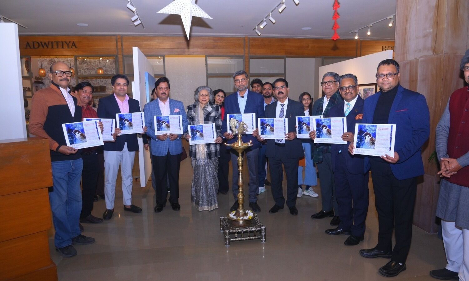 The exhibition was inaugurated with a ceremonial lamp-lighting and the release of an e-catalogue by Shri Swatantra Dev Singh, Hon’ble Cabinet Minister for Jal Shakti, Government of Uttar Pradesh, with Prof. P. Rajivanayan, Dean, Faculty of Fine Art & Performing Arts, Dr. Shakuntala Misra National Rehabilitation University, as Guest of Honour. Their presence underscored the growing recognition of contemporary visual art as a vital cultural discourse rather than a purely aesthetic pursuit.