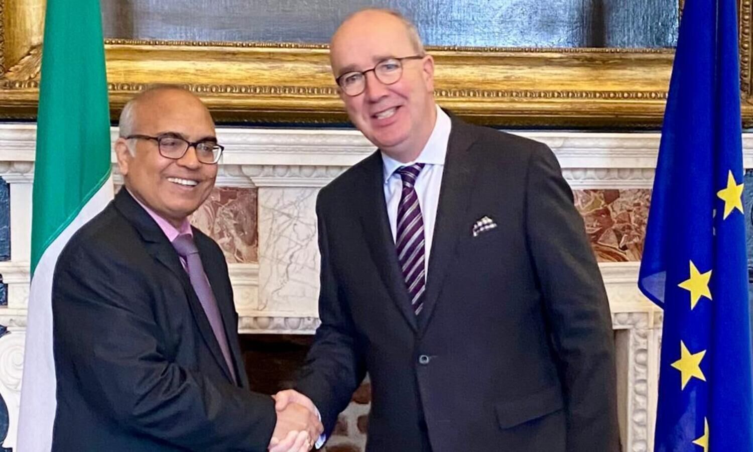 राजदूत अखिलेश मिश्र और आयरलैंड संसदीय समिति प्रमुख जॉन लाहार्ट के बीच भारत-आयरलैंड संबंधों पर चर्चा