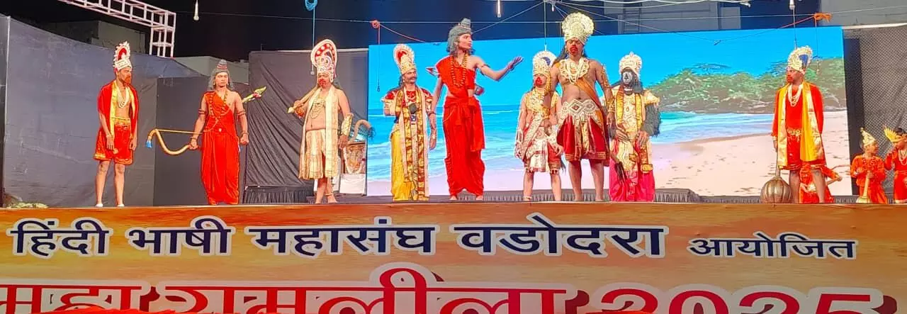 हिंदीभाषी महासंघ वडोदरा द्वारा आयोजित महा रामलीला छठवां दिन : भाव, भक्ति, नीति और वीरता से सजी रामकथा का विराट एवं निर्णायक मंचन