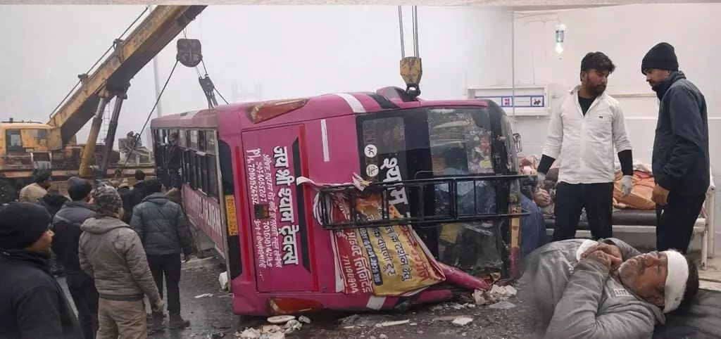 गरोठ–उज्जैन फोरलेन मार्ग पर शामगढ़ थाना क्षेत्र के अंतर्गत मंगलवार तड़के एक बड़ा और गंभीर सड़क हादसा हुआ। तीर्थ यात्रियों से भरी एक यात्री बस रेलवे ओवरब्रिज के पास अनियंत्रित होकर पलट गई, जिसमें 30 से अधिक यात्री घायल हो गए। घायलों में दो से तीन यात्रियों की हालत गंभीर बताई जा रही है। हादसे के बाद घटनास्थल पर अफरा-तफरी मच गई और कुछ समय के लिए फोरलेन पर यातायात प्रभावित रहा।