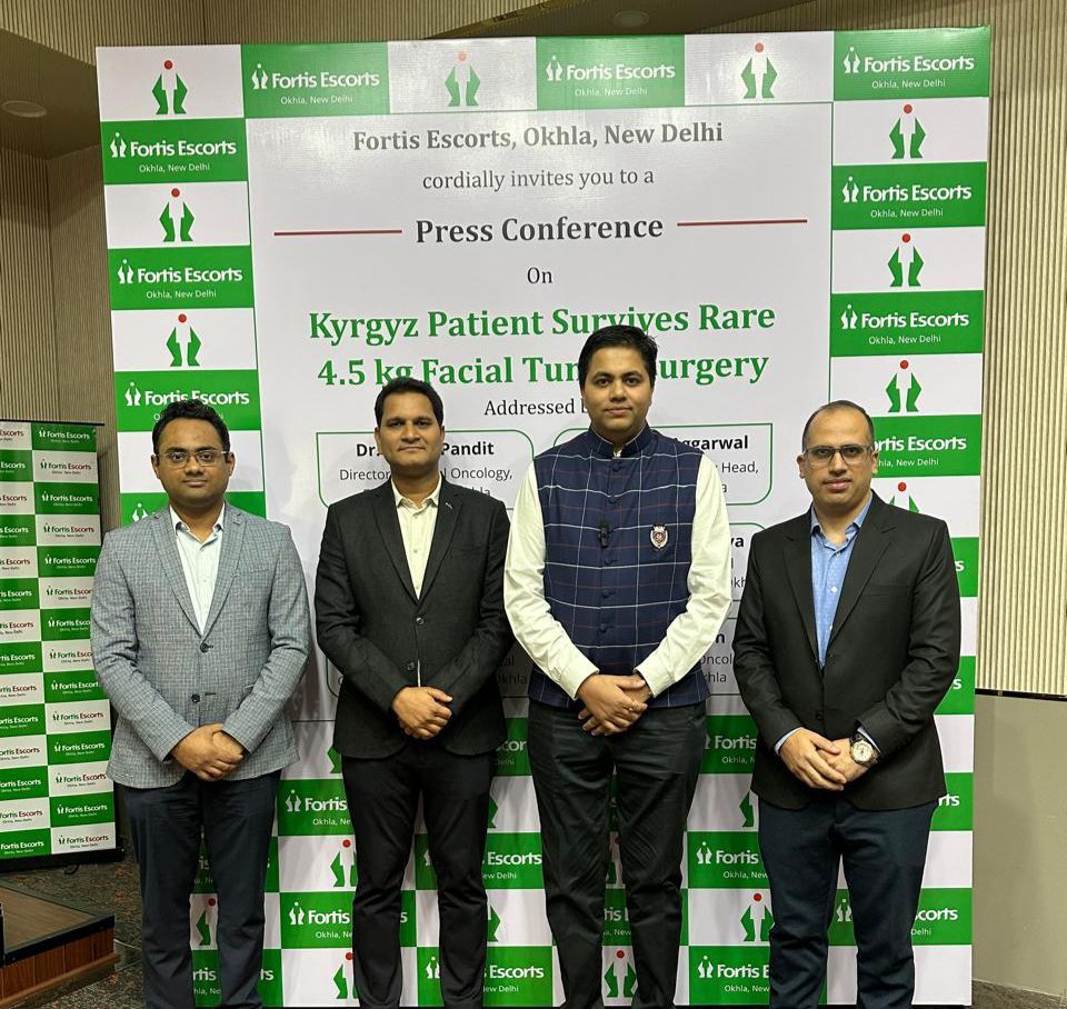 फोर्टिस एस्कॉर्ट्स ओखला, नई दिल्ली की विशेषज्ञ डॉक्टरों की टीम ने एक अत्यंत दुर्लभ और जटिल सर्जरी में सफलता प्राप्त करते हुए किर्गिस्तान के 48 वर्षीय मरीज के चेहरे से 4.5 किलोग्राम वज़न तथा लगभग फुटबॉल के आकार (19x18 सेमी.) का कैंसरग्रस्त ट्यूमर (एक्स्ट्रा-स्केलेटल ऑस्टियोसारकोमा) निकालकर उनकी जान बचाई। जब मरीज अस्पताल पहुँचे, ट्यूमर उनके चेहरे के दाएं हिस्से से बाहर लटका हुआ था, जिस कारण उन्हें भारी दर्द, संक्रमण और दुर्गंध का सामना करना पड़ रहा था। ट्यूमर इतना बड़ा था कि मरीज को यात्रा के दौरान इसे हाथ से सहारा देना पड़ता था।