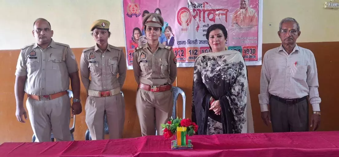 मुरादाबाद बिलारी। मनमोहन शर्मा वैध जी सीनियर सेकेंडरी स्कूल में मिशन शक्ति कार्यक्रम के तहत बालिकाओं को सुरक्षा के प्रति जागरूक किया गया। इस मौके पर महिला दरोगा छाया यादव के अलावा महिला कांस्टेबल भी मौजूद रही। उन्होंने बालिकाओं की समस्याओं को सुना और उसका निस्तारण भी किया।