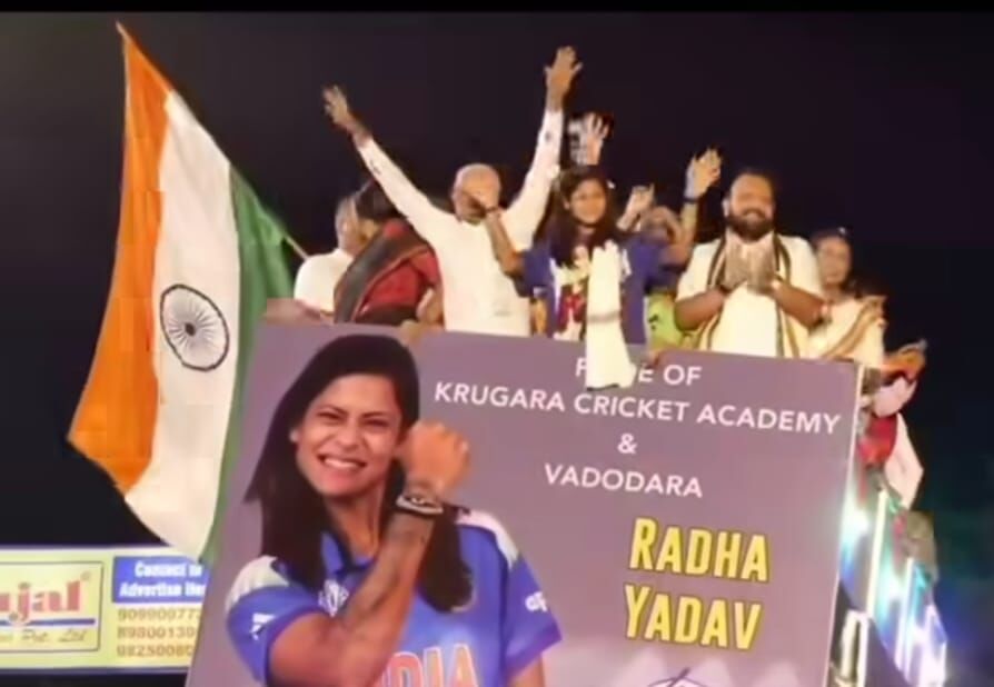 भारत को विमेंस वर्ल्ड कप में ऐतिहासिक जीत दिलाने वाली भारतीय महिला क्रिकेट टीम की स्पिनर राधा यादव के स्वागत में वडोदरा शहर रविवार को देशभक्ति, गर्व और उल्लास में डूब गया। एयरपोर्ट से लेकर कृगारा क्रिकेट एकेडमी तक निकले भव्य विजय रथ यात्रा जैसे रोड शो में हजारों लोग सड़कों पर उमड़ पड़े।