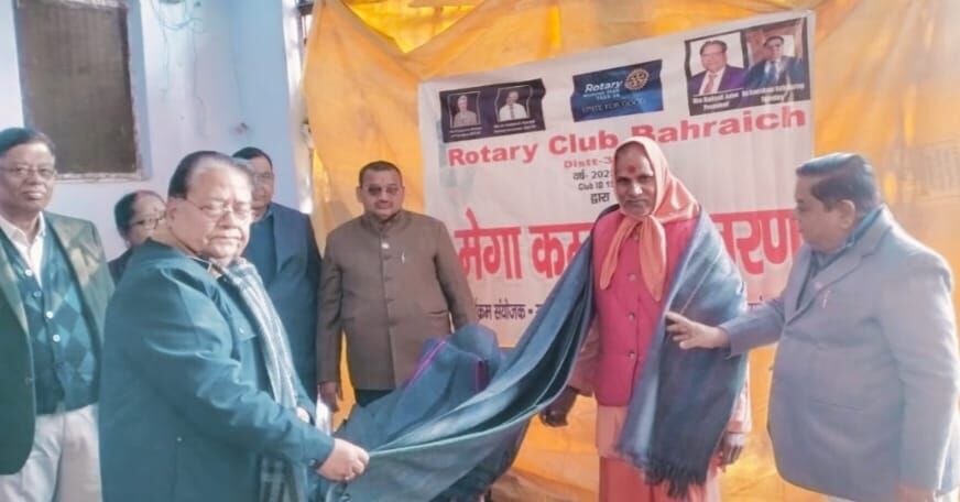 बहराइच। नववर्ष के शुभ अवसर पर रोटरी क्लब बहराइच ने कड़ाके की ठंड से जूझ रहे असहाय एवं बेसहारा वृद्धजनों के लिए मानवीय पहल करते हुए कंबल वितरण कार्यक्रम आयोजित किया। यह सेवा कार्यक्रम मोनी बाबा आश्रम एवं घंटाघर चौराहा क्षेत्र में सम्पन्न हुआ, जहाँ बड़ी संख्या में जरूरतमंद वृद्धजन उपस्थित रहे।
