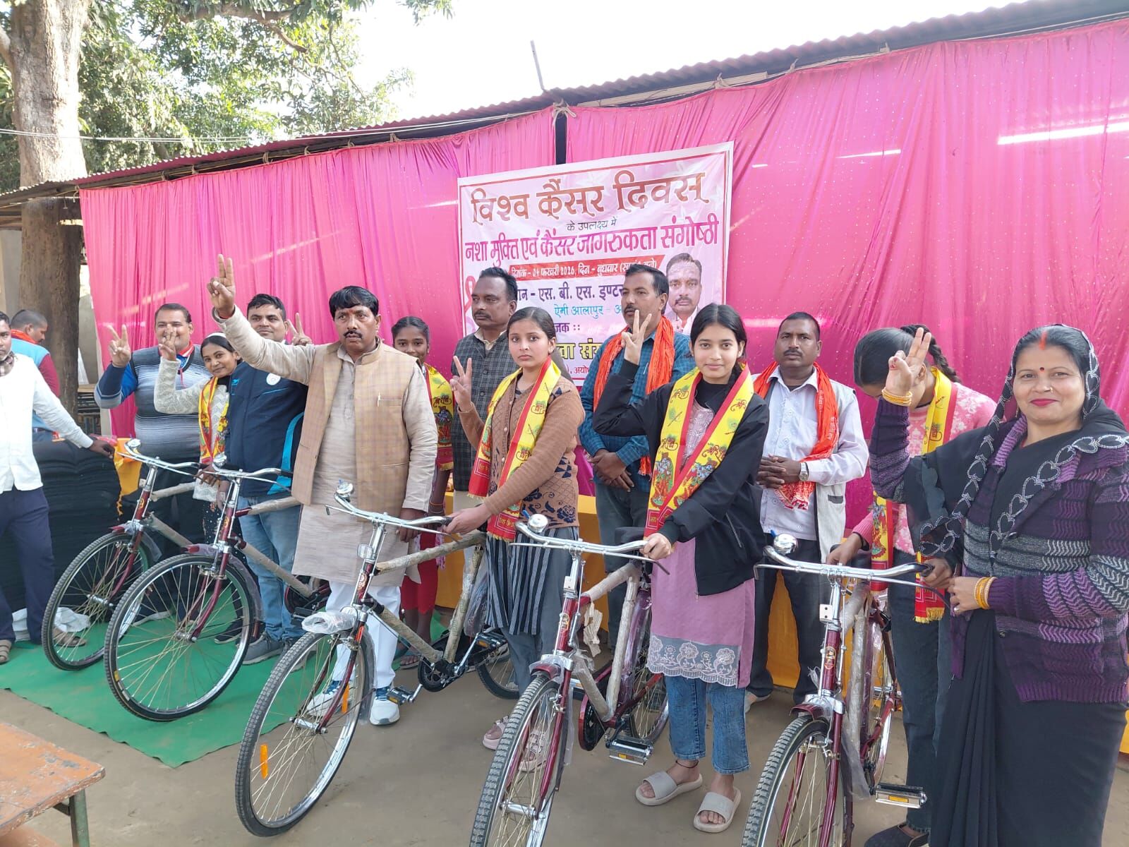 कैंसर दिवस व नशा मुक्ति अभियान के अवसर पर मेधावी छात्राओं को साइकिल वितरण