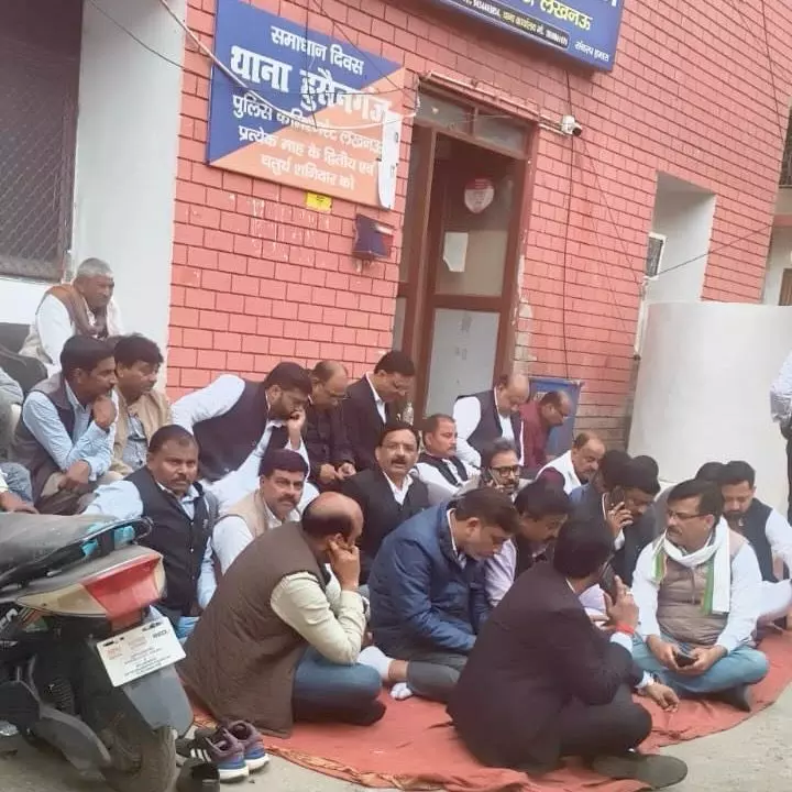 हुसैनगंज थाने में कांग्रेस अध्यक्ष के सम्मान में धरना जारी
