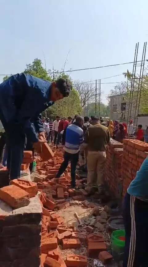 प्रतापगढ़ : मंदिर भूमि पर बनी दीवार गिराने का वीडियो वायरल, आठ महिलाएं गिरफ्तार; पुलिस व प्रशासन की कार्रवाई के बाद स्थिति सामान्य
