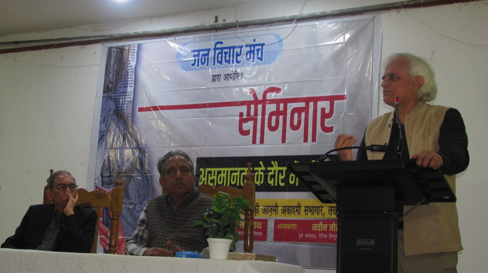की चिट्ठी' नामक कॉलम छपता था जिसमें गाँव की समस्याएं लोग लिख कर भेजते थे और बाद में उन समस्याओं के आधार पर समाचार प्रकाशित किए जाते थे लेकिन समय के साथ गाँव की समस्या वाली खबरों का स्पेस कम हो गया है। संगोष्ठी में बड़े पैमाने पर नगर के छात्रों, लेखकों एवं सामाजिक कार्यकर्ताओं ने भागीदारी की। प्रमुख रूप से लखनऊ विश्वविद्यालय की पूर्व कुलपति डॉक्टर रूपरेखा वर्मा , प्रोफेसर रमेश दीक्षित , प्रोफेसर नदीम हसनैन, वंदना मिश्र, मधुगर्ग, अंशु केडिया, ऋषि श्रीवास्तव, नवाबुद्दीन, प्रोफेसर सूरज बहादुर थापा, डॉक्टर रीता चौधरी, श्रीमती अवंतिका सिंह, दीपक कबीर, नागेंद्र सिंह, सुहेल वहीद, प्रतिभा कटियार, अनूप मणि त्रिपाठी अजय शेखर सिंह आदि थे। संगोष्ठी का संचालन प्रतुल जोशी ने किया।