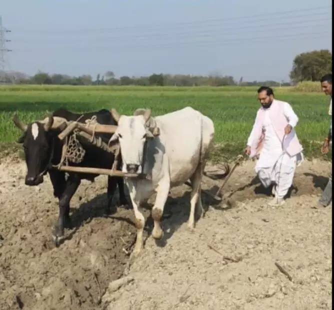 खेत में हल चलाकर विधायक सुभाष त्रिपाठी ने दिया किसानों को आधुनिक खेती का संदेश
