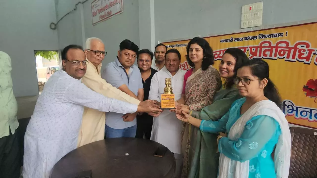 इस अवसर पर राजकीय आयुर्वेदिक चिकित्सालय की चिकित्सा अधिकारी वैद्य वर्णिका को ग्रामीण क्षेत्रों में रोगियों की सेवा के लिए व्यापार मंडल की ओर से स्मृति चिन्ह भेंट कर सम्मानित किया गया।