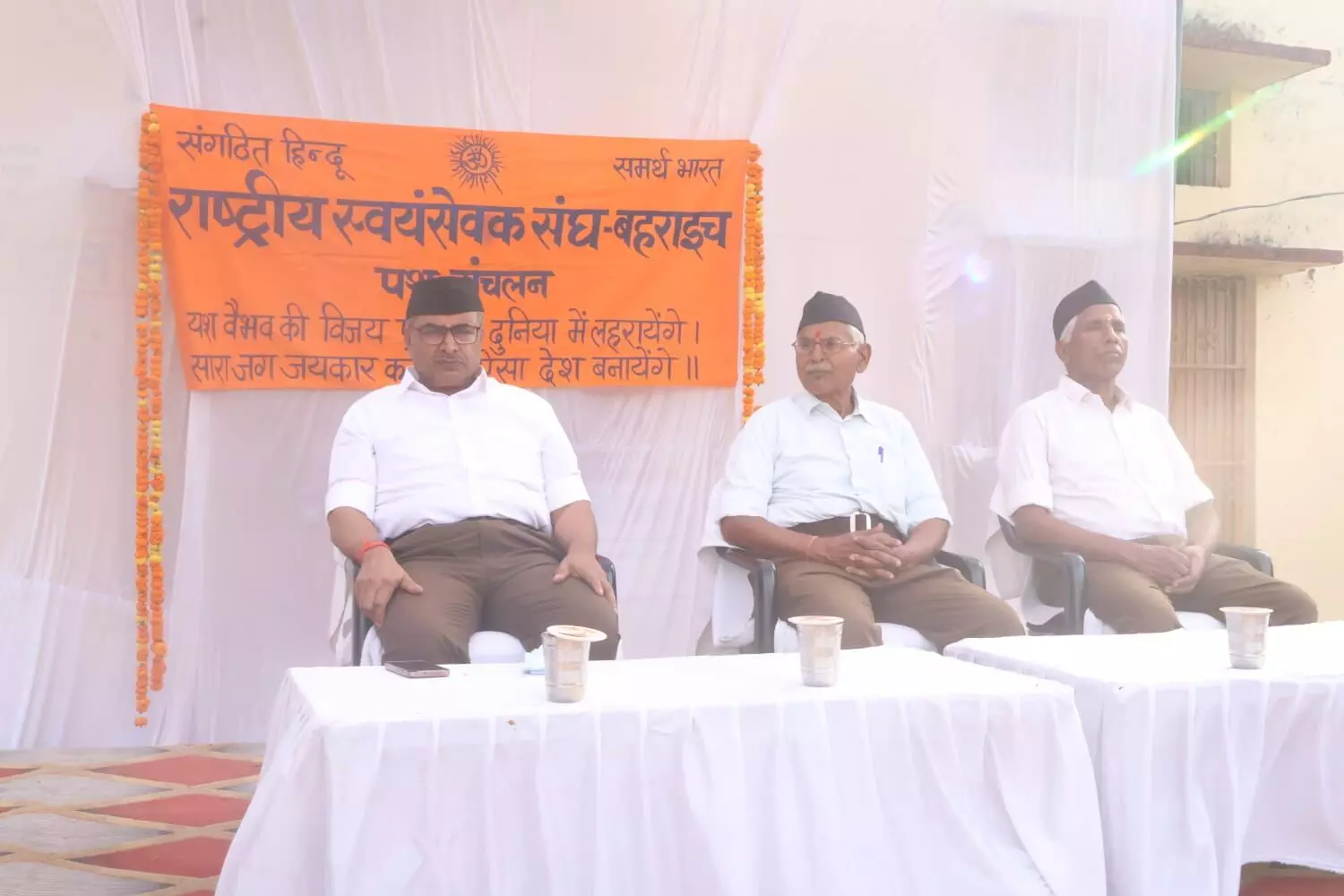 बहराइच। संविधान शिल्पी भारत रत्न बाबा साहब डॉक्टर भीमराव रामजी अंबेडकर की जन्म जयंती के अवसर पर राष्ट्रीय स्वयंसेवक संघ के तत्वावधान में विशाल पथ संचलन निकाला गया। कार्यक्रम में मुख्य वक्ता के रूप में राष्ट्रीय स्वयंसेवक संघ पूर्वी उत्तर प्रदेश क्षेत्र के क्षेत्र प्रचार प्रमुख सुभाष ने स्वयंसेवकों को संबोधित करते हुए कहा कि बाबा साहब भीमराव अंबेडकर ने संविधान निर्माण में अपनी महती भूमिका निभाई। बंधुता जब जीवित होती है तो स्वतंत्रता क्षमता आदि स्वयं में प्रभावित रहती है। भारतीय संस्कृति के द्वारा ही मानव का कल्याण है इसलिए बंधुता सभी के अंदर जीवित होनी चाहिए। उन्होंने कहा कि हम सभी लोग विक्रम संवत 2083 मे प्रवेश कर चुके हैं। प्रतिपदा का अर्थ है निरंतर आगे बढ़ते जाना। निरंतर आगे बढ़ने का संदेश भारतीय संस्कृति देती है। हमारे यहां माह का निर्धारण किसी राजा महाराजा के नाम पर नहीं बल्कि नक्षत्र के आधार पर है। उन्होंने कहा की कमजोर की बात दुनिया नहीं सुनती है इसलिए हमें मजबूत रहना चाहिए एक रहना चाहिए। अनेक महापुरुषों ने संगठन शक्ति के आधार पर ही देश की रक्षा की है, कलयुग में संगठन ही शक्ति का आधार है। दुनिया हमारा परिवार है हमें सभी को साथ लेकर आगे बढ़ाना है। उन्होंने कहा कि मर्यादा पुरुषोत्तम भगवान श्री राम 16 कलाओं से युक्त भगवान श्री कृष्ण, विश्व के कल्याण के लिए विष पीने वाले वाले महादेव और मातृशक्ति के सम्मान में लंका लाघने वाले महाबली हनुमान हमारे पास है। उन्होंने कहा कि समाज की स्थिति को देखते हुए संघ संस्थापक डॉ हेडगेवार ने संघ की स्थापना की थी। उन्होंने कहा कि डॉ साहब जन्मजात देशभक्त थे और उन्होंने देश की स्वतंत्रता के लिए निरंतर कार्य किया। संघ की स्थापना के समय पूज्य डॉक्टर साहब ने कहा था कि हमें देश,समाज,धर्म, संस्कृति लिए जीने वाले लोग चाहिए। संघ संस्थापक डॉक्टर हेडगेवार कभी नकारात्मक भाव नहीं रखते थे उनकी सोच सकारात्मक थी। वह हमेशा कहा करते थे कि हिंदुओं को सद्गुणों से पूर्ण कीजिए। संघ शाखा के माध्यम से सद्गुणों से युक्त स्वयंसेवकों के निर्माण का कार्य कर रहा है। राष्ट्रीय स्वयंसेवक संघ की कार्य पद्धति हमें जीना सिखाती है। संघ के स्वयंसेवक राष्ट्रीय एवं समाज हित में निरंतर कार्य कर रहे हैं। पथ संचलन महाराज सिंह इंटर कॉलेज से दो दिशाओं में एक साथ निकाला गया। प्रथम संचलन दल महाराज सिंह इंटर कॉलेज से प्रारंभ होकर गुरु नानक चौक, डिगिहा चौराहा, छावनी चौराहा, घंटाघर एवं छोटी बाजार होते हुए महाराज सिंह इंटर कॉलेज पहुंचा। द्वितीय संचलन दल भी महाराज सिंह इंटर कॉलेज से होकर पानी टंकी तिराहा, डीएम तिराहा ,पीपल तिराहा, घंटाघर, छोटी बाजार होते हुए महराज सिंह इं