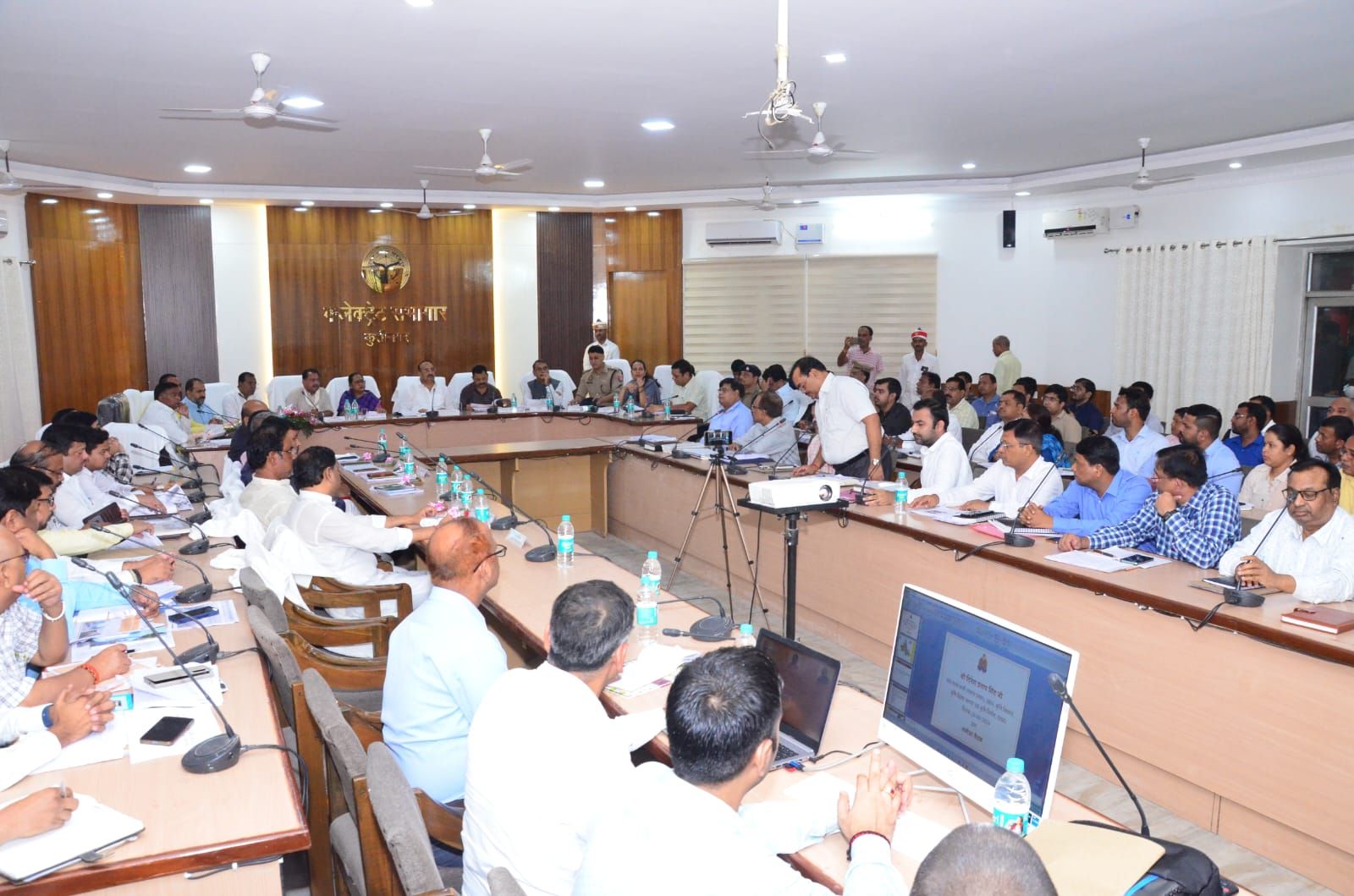 बैठक में वन विभाग, भवन निर्माण, सड़क निर्माण, पेंशन योजना, राष्ट्रीय पारिवारिक लाभ, मनरेगा, नगर निकाय, बृहद गो संरक्षण, निपुण भारत , ऑपरेशन कायाकल्प, स्वास्थ्य, प्रधानमंत्री/मुख्यमंत्री आवास योजना(शहरी/ग्रामीण), महिला एवं बाल विकास, धान क्रय केंद्र, कन्या सुमंगला योजना, मुख्यमंत्री सामूहिक विवाह योजना, पंचायत राज विभाग, विद्युत विभाग, कानून व्यवस्था, पर्यटन विकास , चिकित्सा एवं स्वास्थ्य , दुग्ध विकास, मत्स्य, पशुधन, दिव्यांग एवं वृद्धा पेंशन , सिंचाई एवं जल संसाधन, व उद्योग विभाग आदि के विकास कार्यों की प्रगति की समीक्षा हुई।