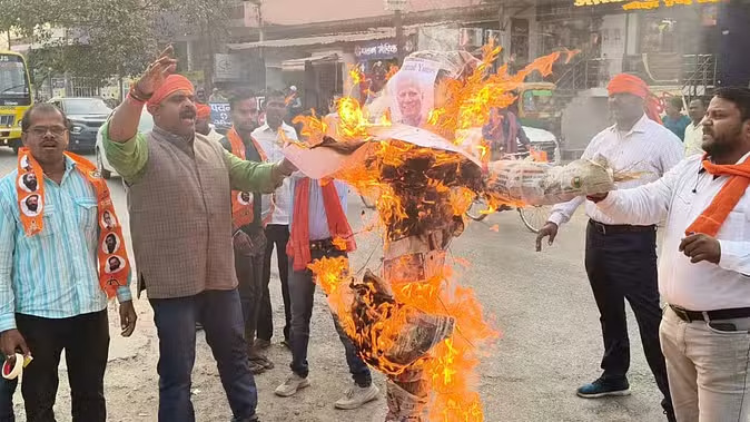 शिवसैनिकों ने फूंका बंग्लादेश के प्रधानमंत्री मोहम्मद यूसुफ का पुतला : हिन्दुओं पर अत्याचार का जवाब देंगे