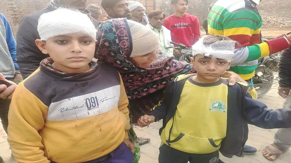अलीगढ़ : स्कूल की बस गड्ढे में पलटी, कई बच्चे घायल, सिर में गंभीर चोटें, हाथ-पैर में फ्रैक्चर