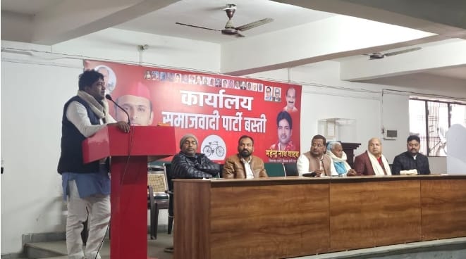बैठक को सम्बोधित करते हुये सपा जिलाध्यक्ष एवं बस्ती सदर विधायक महेन्द्रनाथ यादव ने कहा कि समाजवादी पार्टी पदाधिकारी और कार्यकर्ताओं का दायित्व है कि वे निरन्तर जनता के बीच बने रहें और उनकी समस्याओं के निराकरण का प्रयास करें। कहा कि समाजवादी पार्टी के नीति, कार्यक्रमों को जनता से जोड़ने के साथ ही दवाई, पढाई, विकास के मोर्चो पर अपने-अपने क्षेत्रों में निरन्तर संघर्ष को जारी रखने के साथ ही राष्ट्रीय अध्यक्ष अखिलेश यादव के मार्गदर्शन में पार्टी की मजबूती में जुट जाय।