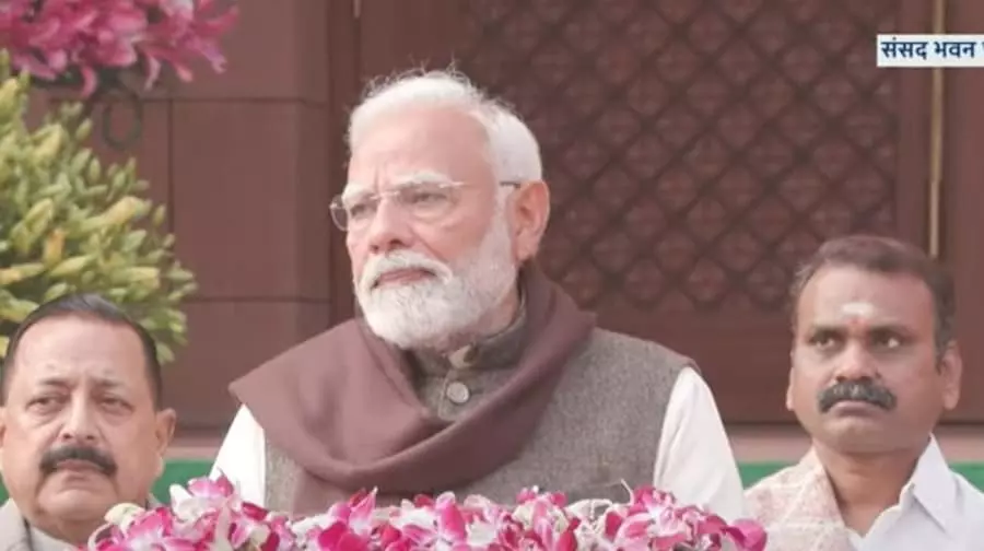 प्रधानमंत्री नरेंद्र मोदी बजट सत्र की कार्यवाही में शामिल होने के लिए संसद भवन पहुंच गए हैं. पीएम मोदी ने इस दौरान पत्रकारों को संबोधित करते हुए धन की देवी मां लक्ष्मी का स्मरण किया और समृद्धि की देवी की स्तुति की और कहा कि ये सदियों पुरानी परंपरा है. उन्होंने कहा कि मां लक्ष्मी से प्रार्थना करता हूं कि समृद्धि और विवेक, समृद्धि और कल्याण भी देती हैं. मैं प्रार्थना करता हूं कि देश के हर गरीब और मध्यमवर्ग पर मां लक्ष्मी की विशेष कृपा रहे. गणतंत्र के 75 वर्ष पूरे हुए हैं और ये हर देशवासी के लिए सर्वाधिक गौरवपूर्ण है
