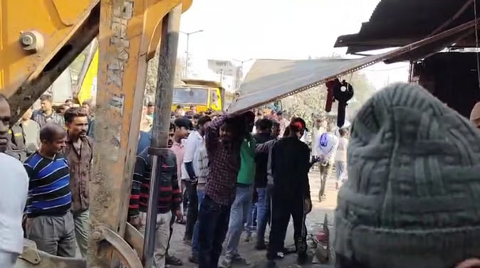 कानपुर : बाकरगंज में चला अतिक्रमण हटाओ अभियान, बुलडोजर से ध्वस्त किए अवैध कब्जे, सामान लेकर भागे लोग