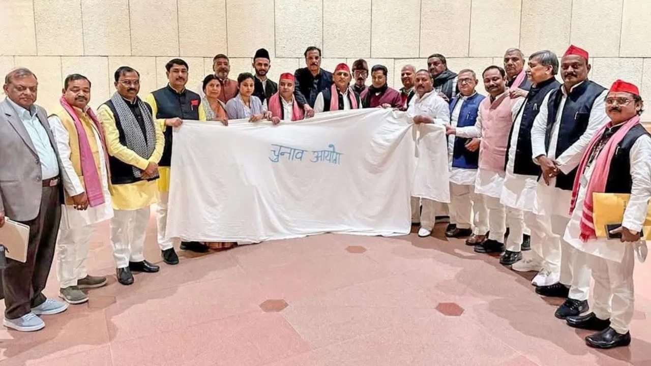 समाजवादी पार्टी के प्रमुख अखिलेश यादव ने चुनाव आयोग को निशाने पर लिया है. मिल्कीपुर में वोटिंग के बाद अखिलेश ने गुरुवार को कहा कि चुनाव आयोग मर चुका है. हमें सफेद कपड़ा भेंट करना पड़ेगा. इस बयान के बाद अखिलेश यादव सपा सांसदों के साथ एक ‘कफन’ जिसपर चुनाव आयोग लिखा था, को पकड़ कर फोटो खीचाते नजर आए.