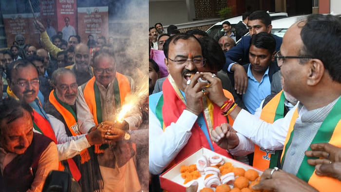 दोहरी जीत पर जश्न में डूबे भाजपा नेता-कार्यकर्ता, प्रदेश अध्यक्ष और उप मुख्यमंत्री ने फोड़े पटाखे