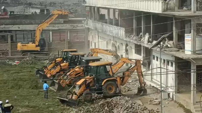 कुशीनगर में मदनी मस्जिद पर चला बुलडोजर, सरकारी जमीन पर बनी थी