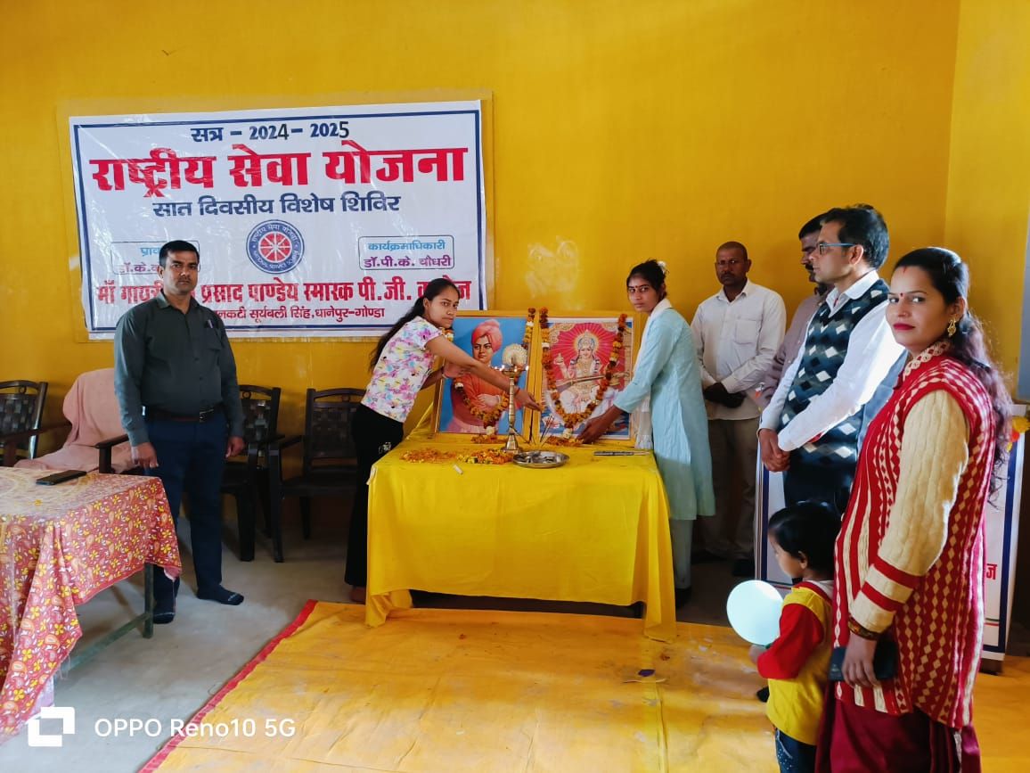 गोंडा। मां गायत्री राम प्रसाद पांडे स्मारक पीजी कॉलेज मुगरौल धानेपुर गोंडा में राष्ट्रीय सेवा योजना का सप्त दिवसीय विशेष शिविर आयोजित किया गया। शिविर में स्वच्छता अभियान चलाया गया जो दतौली- धानेपुर मार्ग पर स्थित नई देवी मंदिर एवं कॉलेज के आसपास एनएसएस की छात्र -छात्राओं ने साफ सफाई किया। एनएसएस के छात्र छात्राओं को समाज सेवा राष्ट्र सेवा के बारे में बताया गया। इसके मुख्य उद्देश्य पर प्रकाश डाला गया।