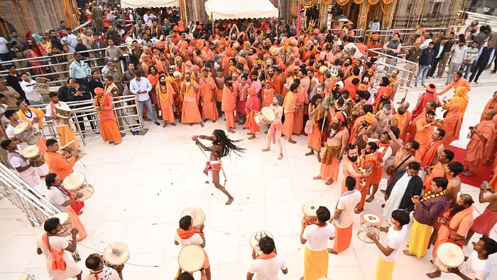 हर-हर महादेव का जयकारा लगाते हुए नागा संन्यासियों की टोली विश्वनाथ धाम में पहुंची। बता दें कि इससे पहले नागा संन्यासियों को ढुंढिराज गणेश मार्ग से मंदिर परिसर में प्रवेश मिलता था। नागा संन्यासियों ने बाबा दरबार में हाजिरी लगाई। इस दौरान महाकुंभ की पूर्णाहुति की गई। काशी विश्वनाथ मंदिर में पूजा-अर्चना करने के बाद निरंजनी अखाड़े के आचार्य महामंडलेश्वर स्वामी कैलाशानंद गिरि महाराज ने कहा कि महाशिवरात्रि के अवसर पर सभी पांच अखाड़ों ने महादेव की पूजा-अर्चना की और महाकुंभ की 'पूर्णाहुति' के लिए 'अभिषेक' किया।