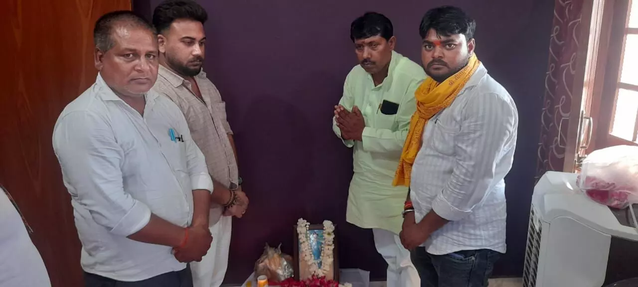 समाजसेवी सुरेश यादव ने अमर शहीद शशांक तिवारी के चित्र पुष्प अर्पित कर किया नमन