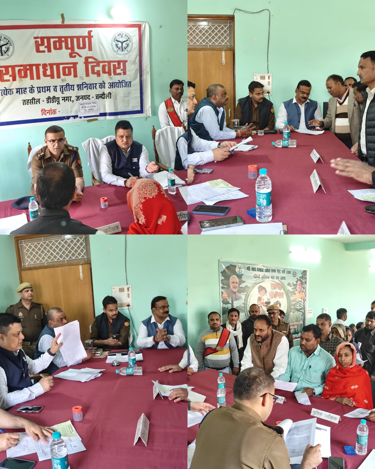 चंदौली/पीडीडीयू नगर: जनपद चंदौली में जिलाधिकारी निखिल टी फुंडे एवं पुलिस अधीक्षक आदित्य लांघे की अध्यक्षता में शनिवार को तहसील पीडीडीयू नगर सभागार में जिला स्तरीय संपूर्ण समाधान दिवस का आयोजन किया गया। जिनमें विभिन्न मामलों के 115 प्रार्थना पत्र पड़े जिनमें से 04 प्रार्थना पत्र का मौके पर निस्तारण हुआ।