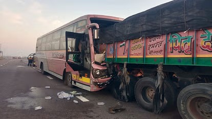 अमेठी में ट्रेलर से भिड़ी तेज रफ्तार डबल डेकर बस, ड्राइवर समेत 12 घायल; हादसे के बाद धू धू कर जली गाड़ी